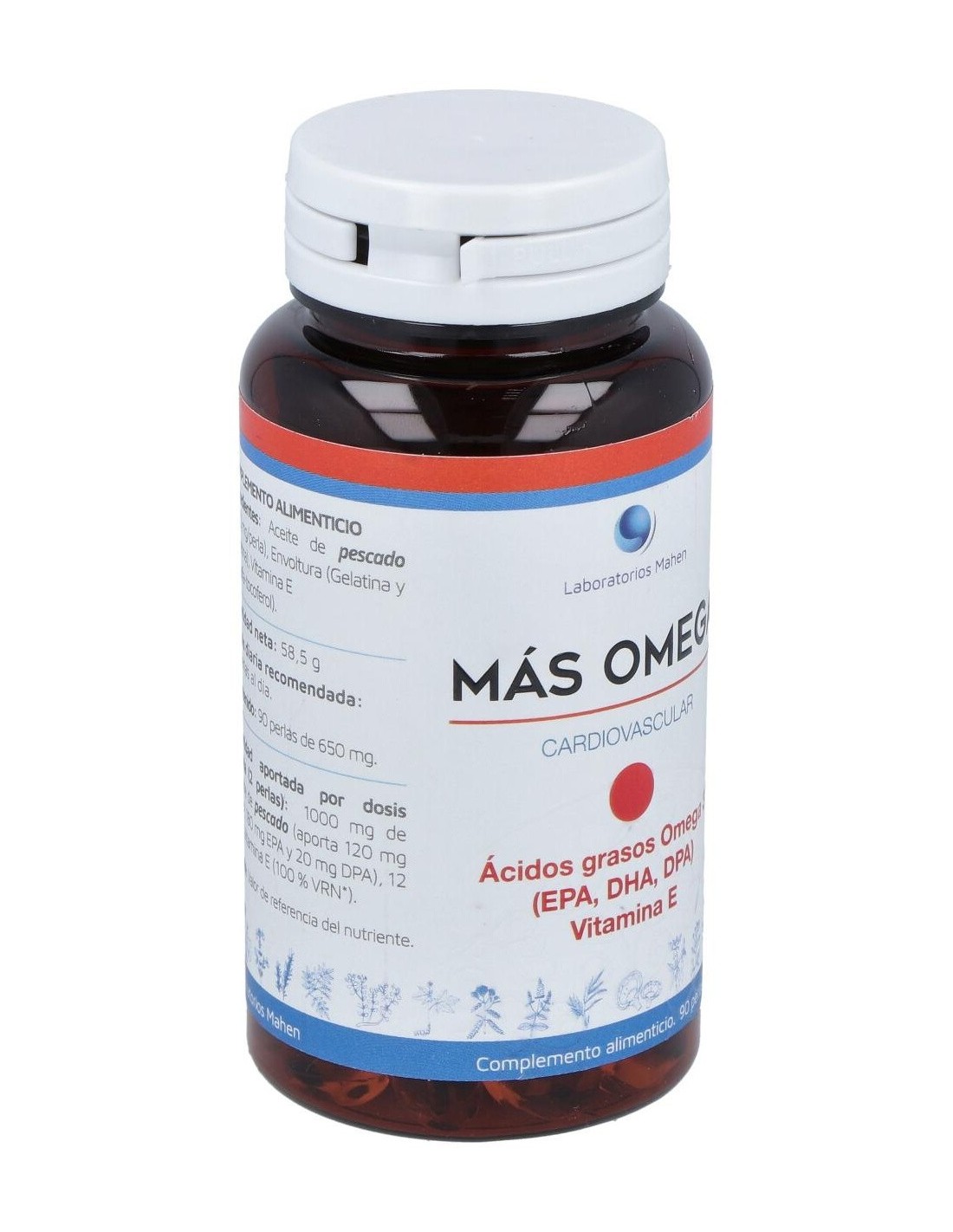 Mas Omega 90Perlas de Mahen es un suplemento diseñado para personas que buscan complementar su dieta con ácidos grasos esenciales. Este producto es adecuado para quienes desean mantener un aporte constante de omega en su rutina diaria, apoyando un estilo de vida equilibrado.