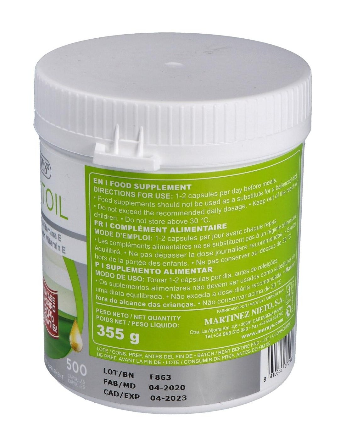 Aceite De Onagra (Mar-Vitoil) 500Mg. 500Perlas de Marnys