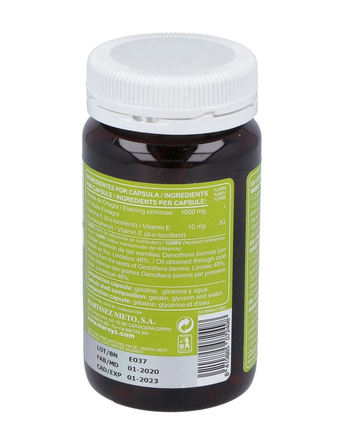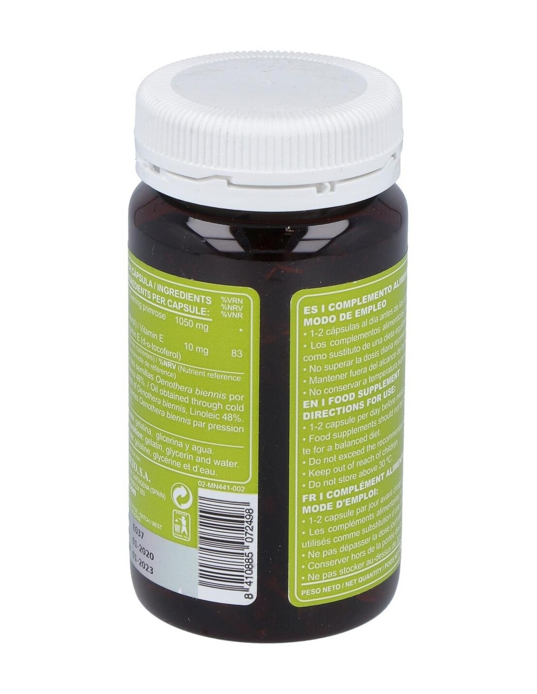 El aceite de onagra utilizado en este producto se obtiene mediante procesos que preservan sus componentes activos, asegurando una composición estable y homogénea en cada perla. Su formato en cápsulas blandas permite una absorción práctica y cómoda, ideal para quienes prefieren suplementos fáciles de incorporar en su día a día.