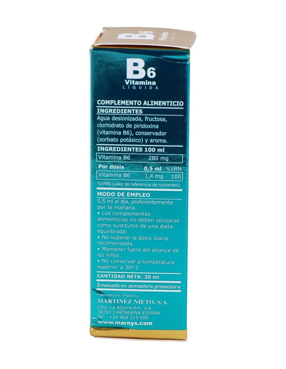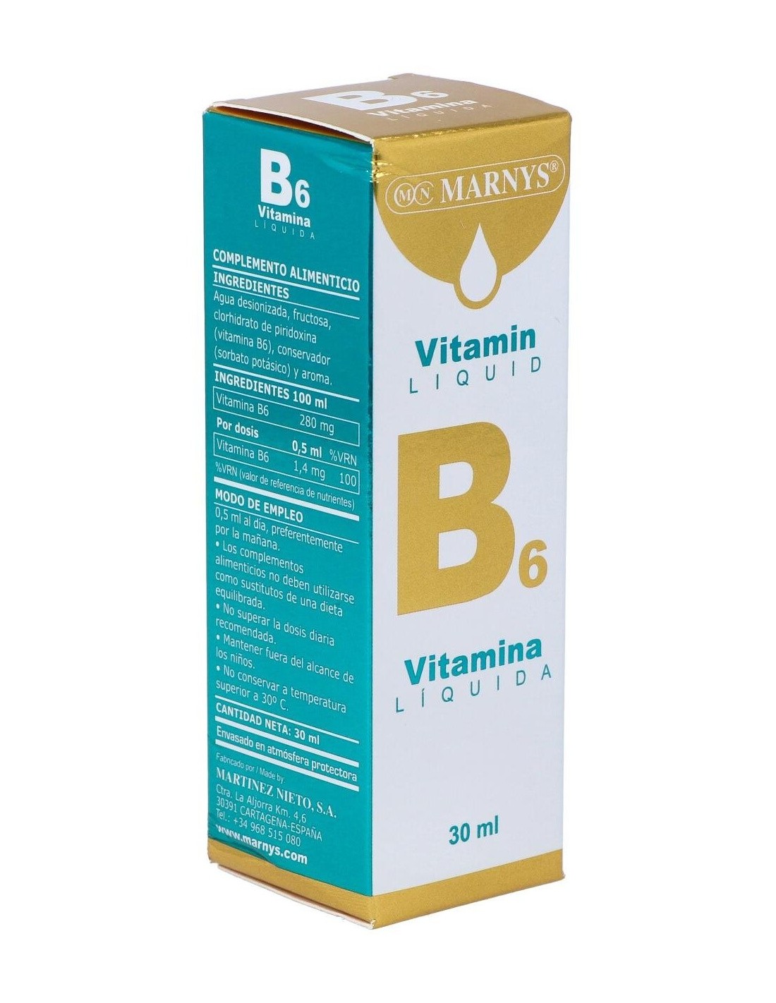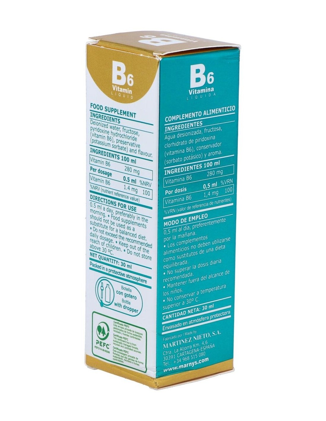 Vitamina B6 Líquida 30 ml de Marnys ofrece una opción versátil para complementar la ingesta diaria de esta vitamina, adaptándose a diferentes estilos de vida y preferencias de consumo.