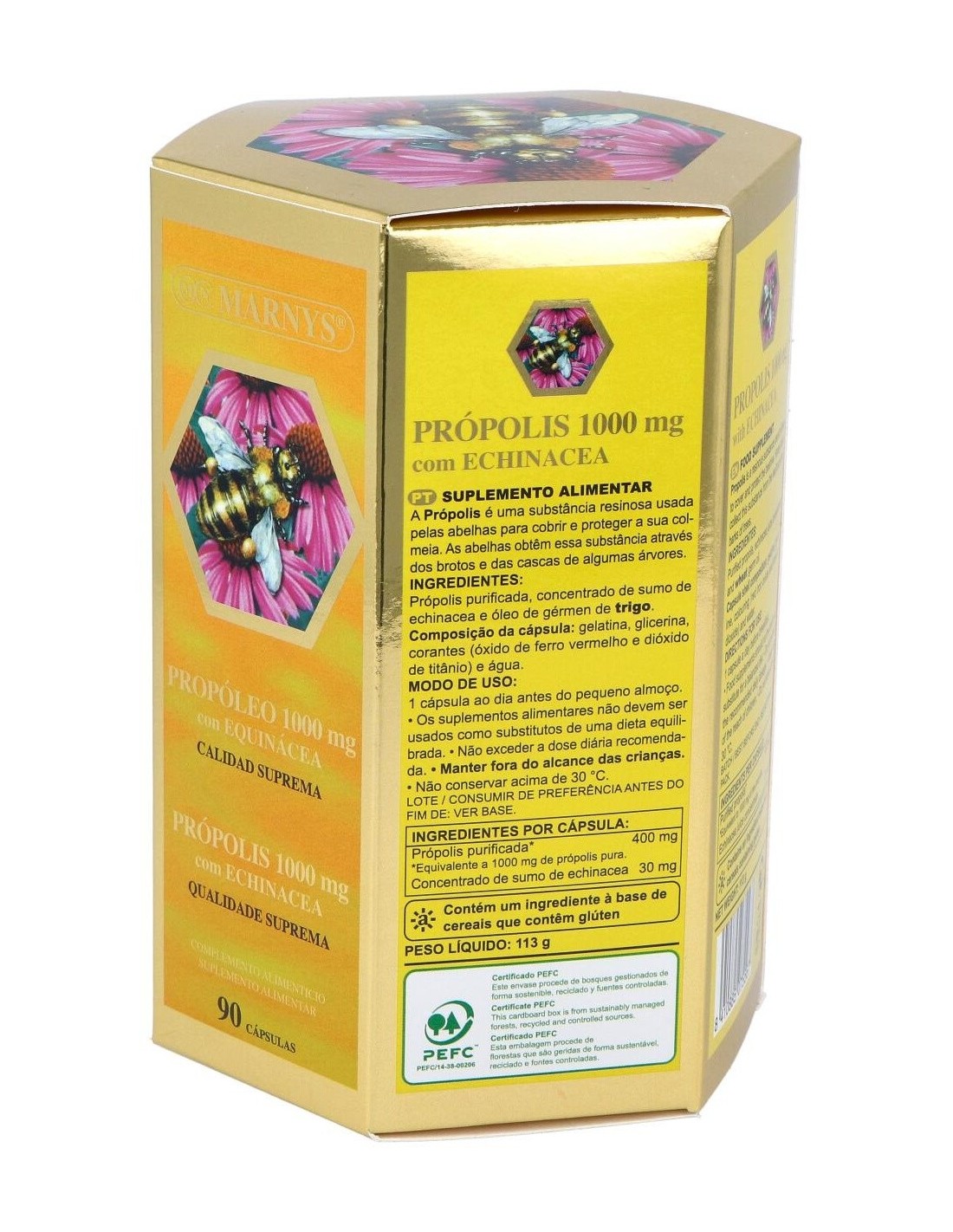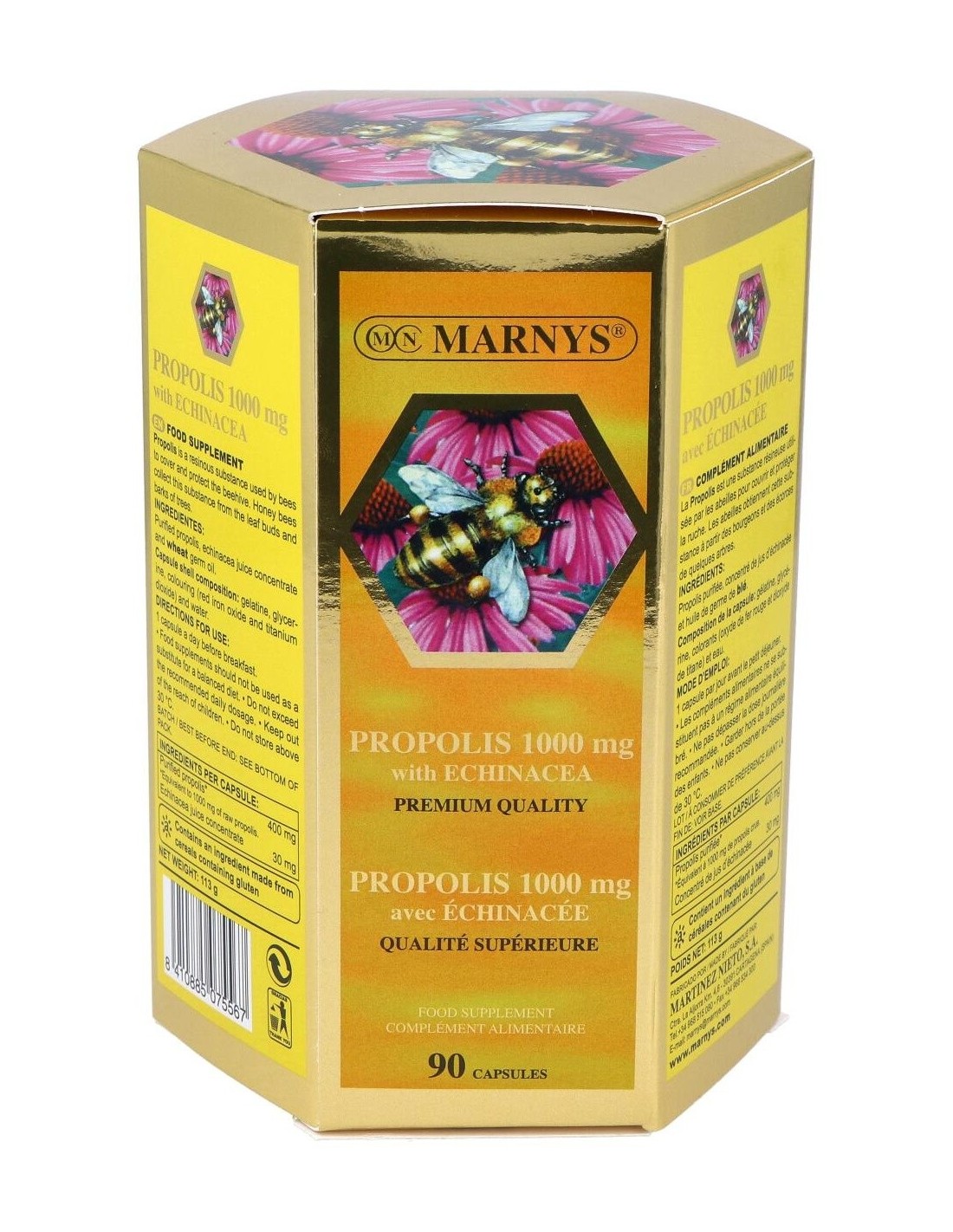 El Propoleo 1000Mg con Echinacea 90 Perlas de Marnys es un suplemento natural para adultos que apoya el bienestar diario, combinando propóleo y echinacea en una presentación práctica y fácil de consumir.