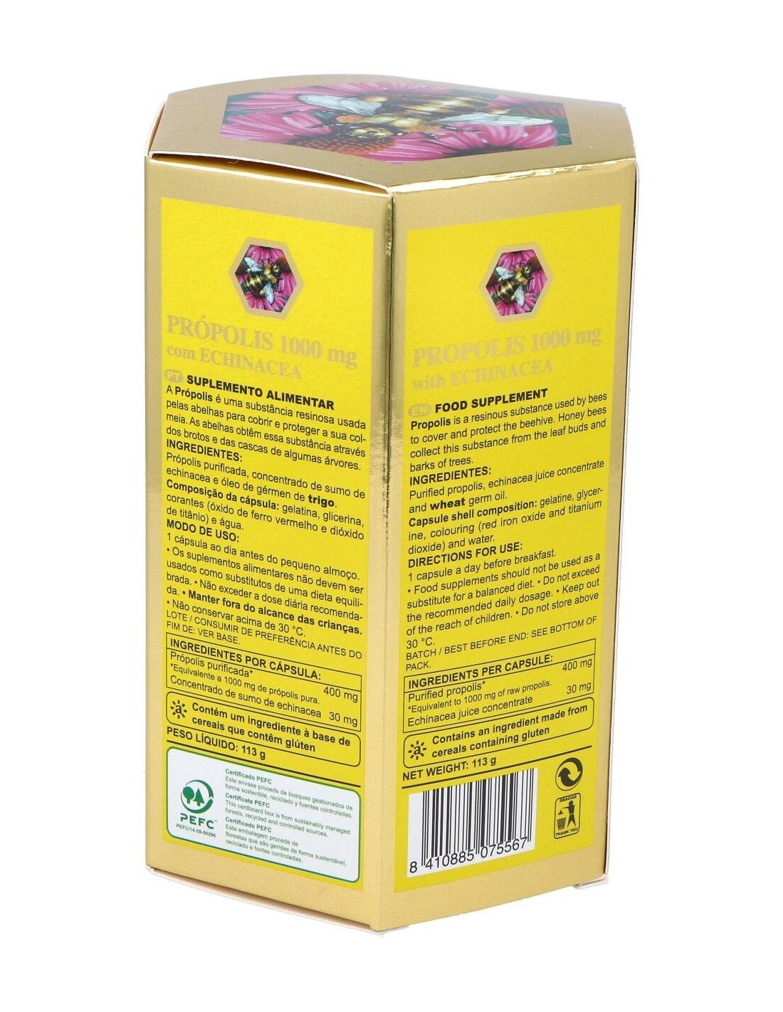 - Contiene 1000 mg de propóleo por dosis, reconocido por su composición natural que contribuye a la protección del organismo.