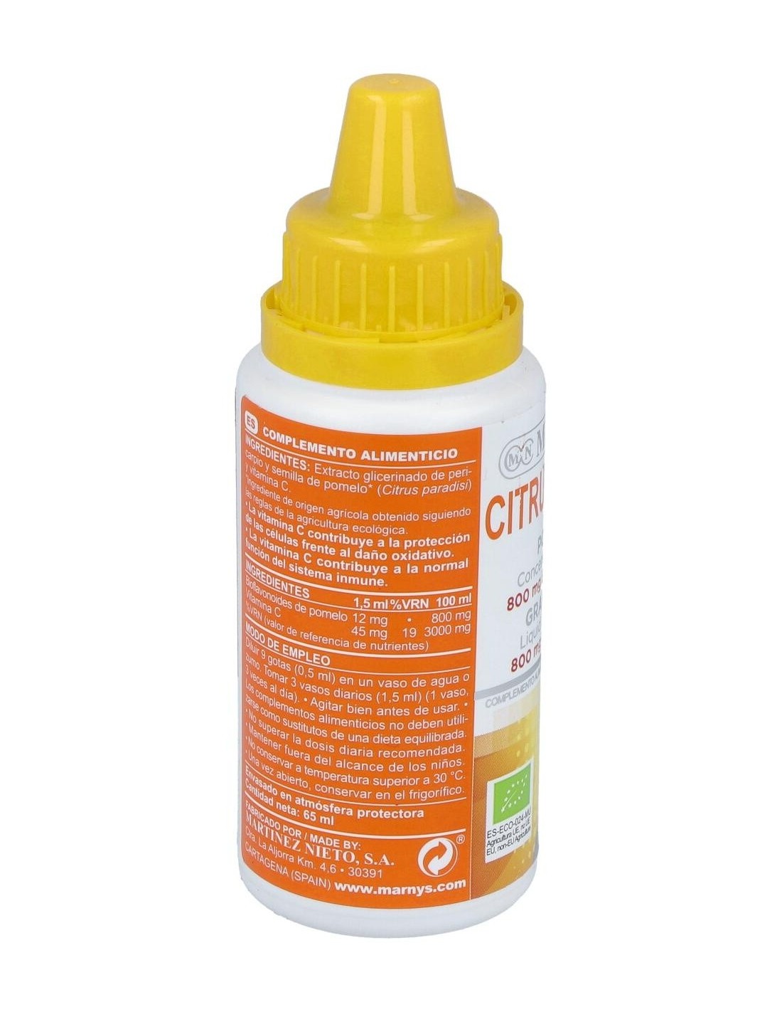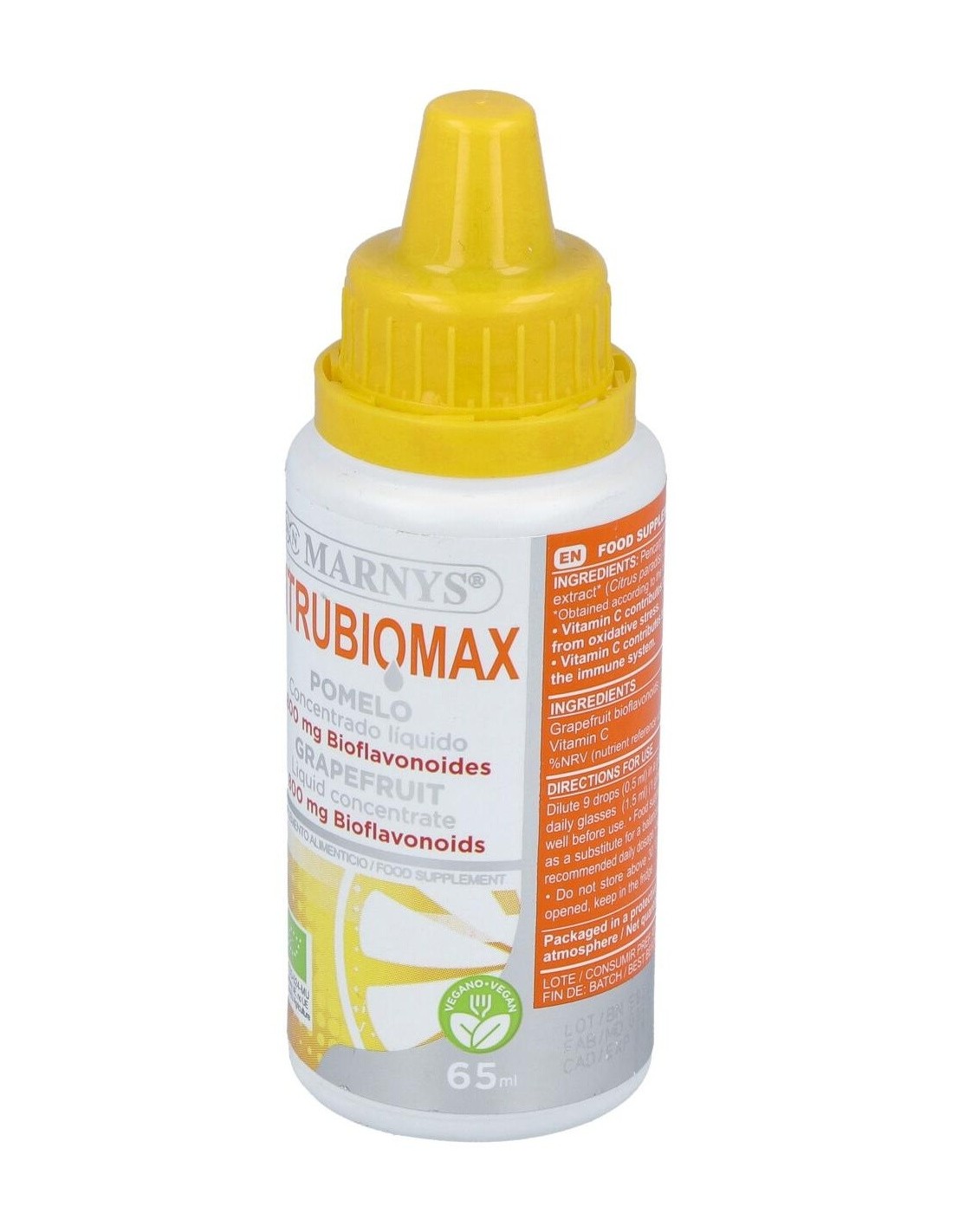 Citrubiomax Extracto De Pomelo Bio 65Ml. de Marnys es un complemento natural pensado para personas que buscan incorporar ingredientes de origen biológico en su rutina diaria. Este extracto se presenta en formato líquido, facilitando su dosificación y consumo.