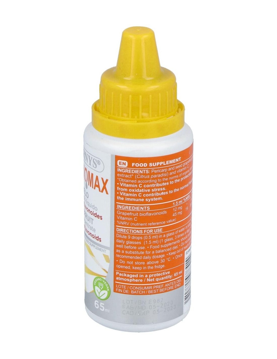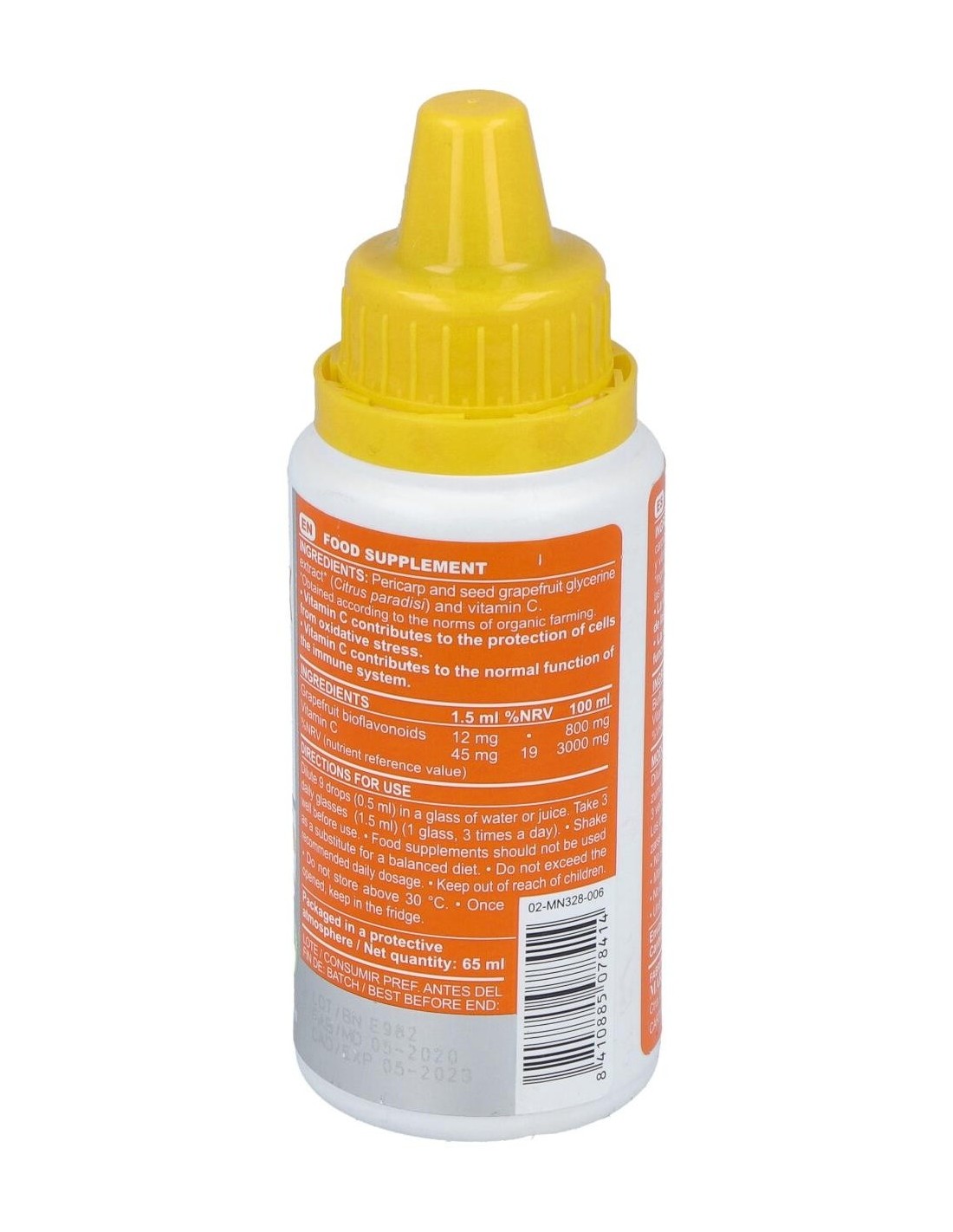 - Extracto de pomelo procedente de cultivos ecológicos, que mantiene las propiedades naturales del fruto.