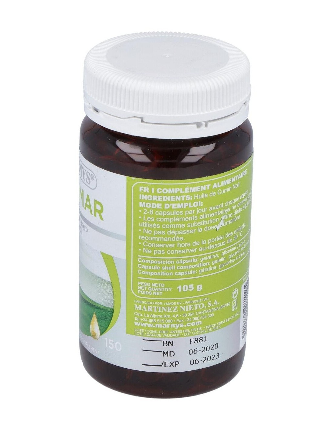 Cuminmar (Comino Negro) 150Perlas de Marnys ofrece una alternativa práctica para complementar la alimentación diaria con extracto de comino negro, adaptándose a diferentes estilos de vida.