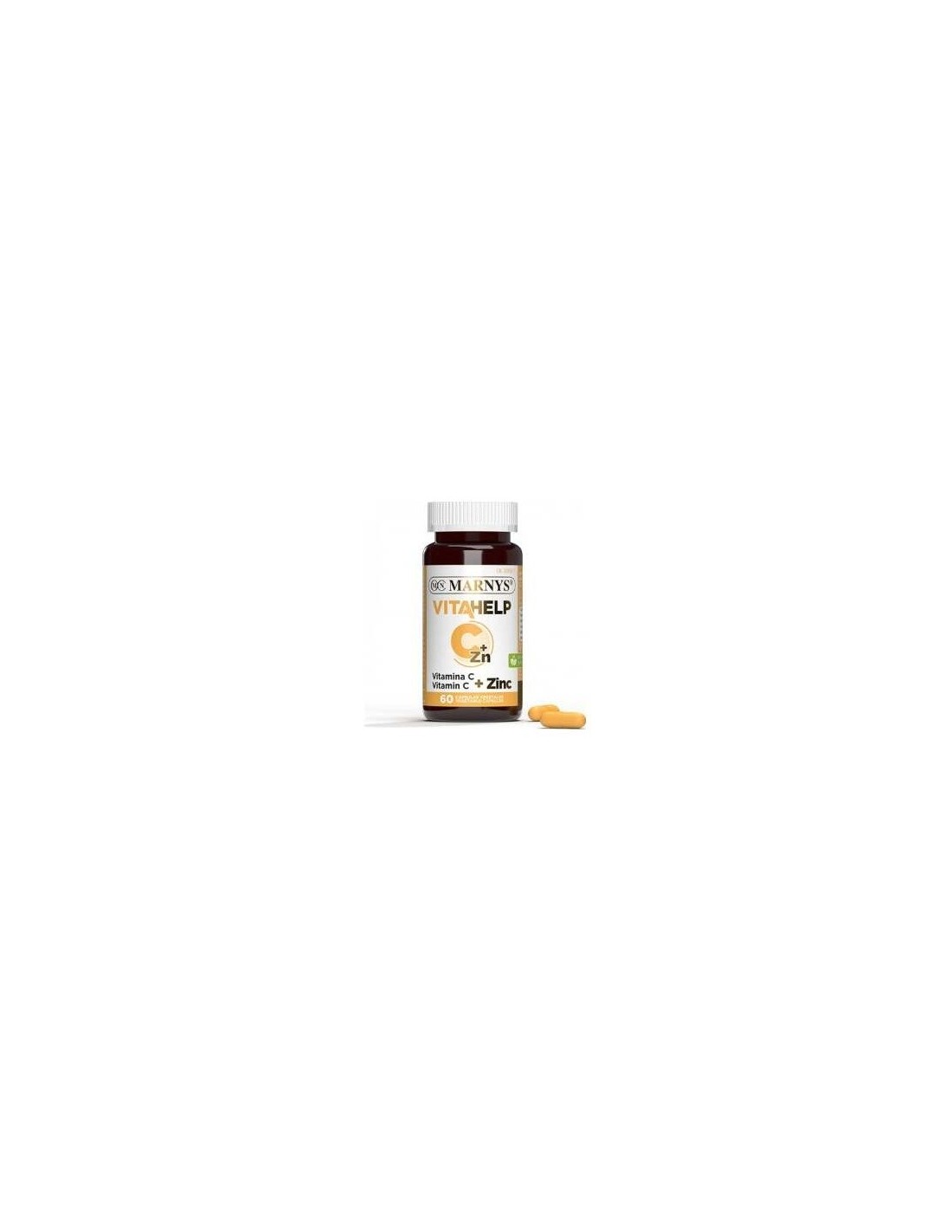 Vitamina C (ácido ascórbico), óxido de zinc e incrementador de volumen (celulosa microcristalina). Composición cápsula vegetal: Hipromelosa, dióxido de titanio y colorante (óxido de hierro amarillo).