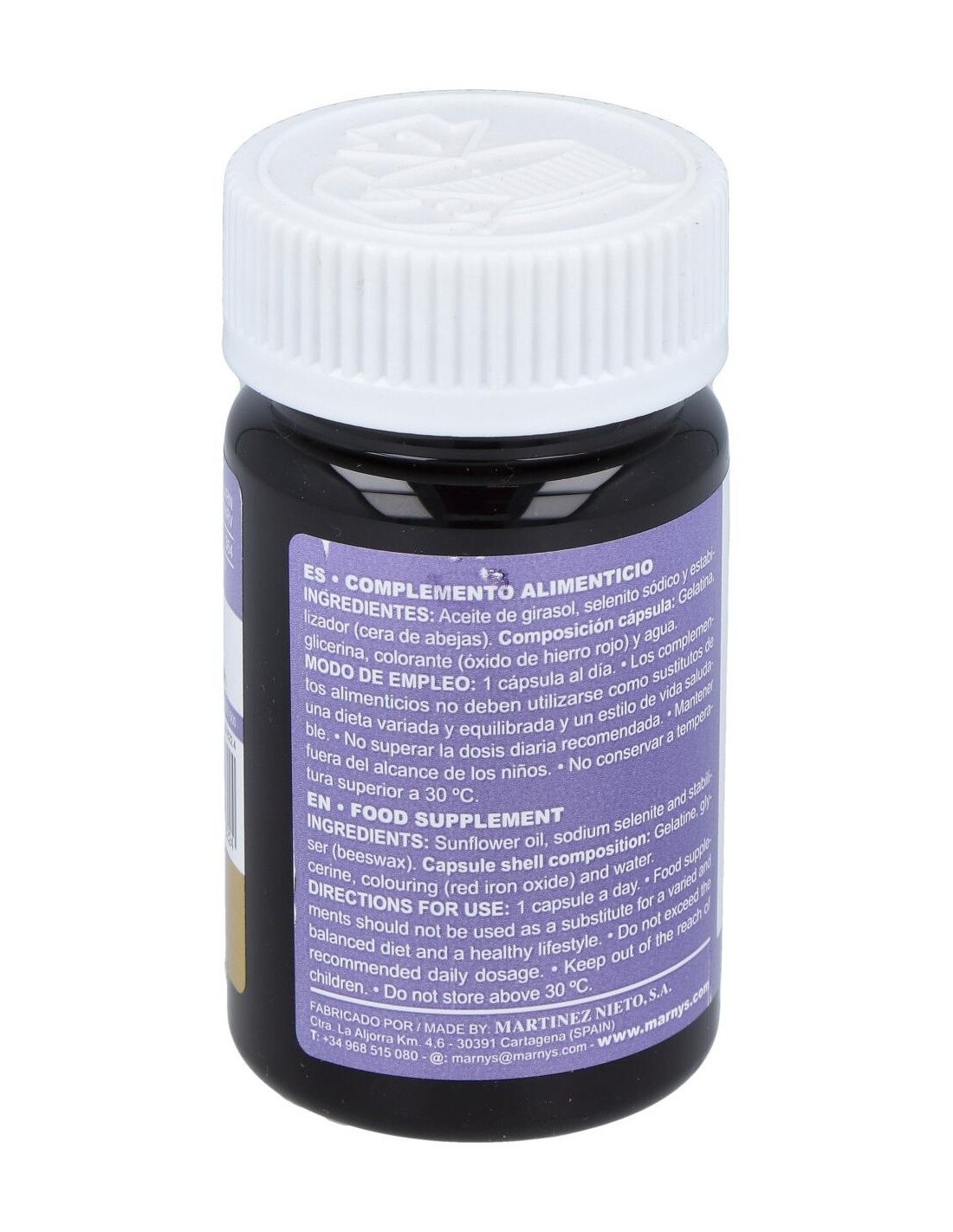 Aceite de girasol, selenito sódico y estabilizador (cera de abejas). Composición cápsula: Gelatina, glicerina, colorante (óxido de hierro rojo) y agua.