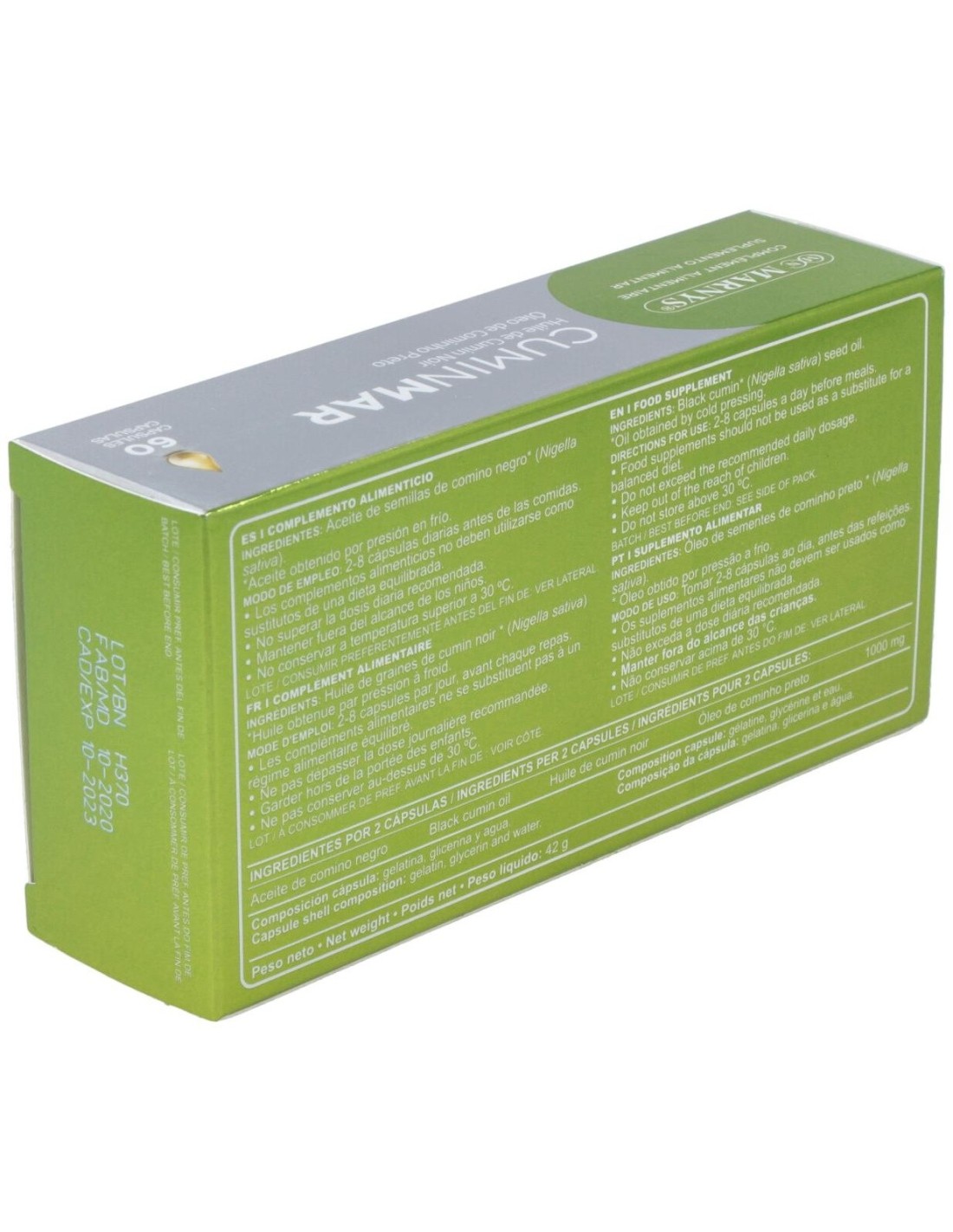 Aceite de Comino Negro: 500 mg. (obtenido de las semillas de nigella sativa L. mediante presión en frío)