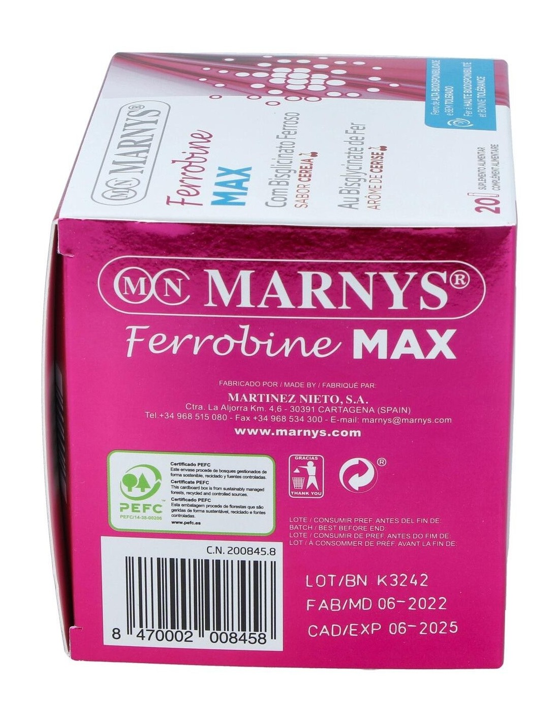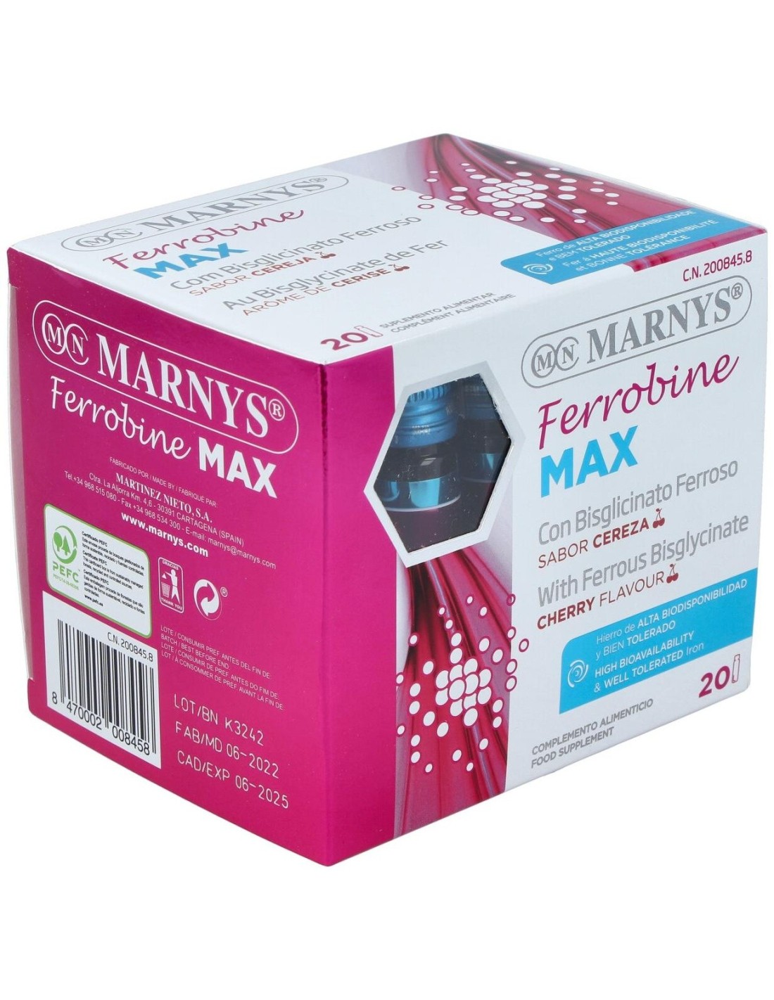 Suplemento nutricional diseñado para mejorar la absorción de hierro en el cuerpo y prevenir los estados de anemia, cansancio y fatiga. Contiene un agradable sabor a cereza.