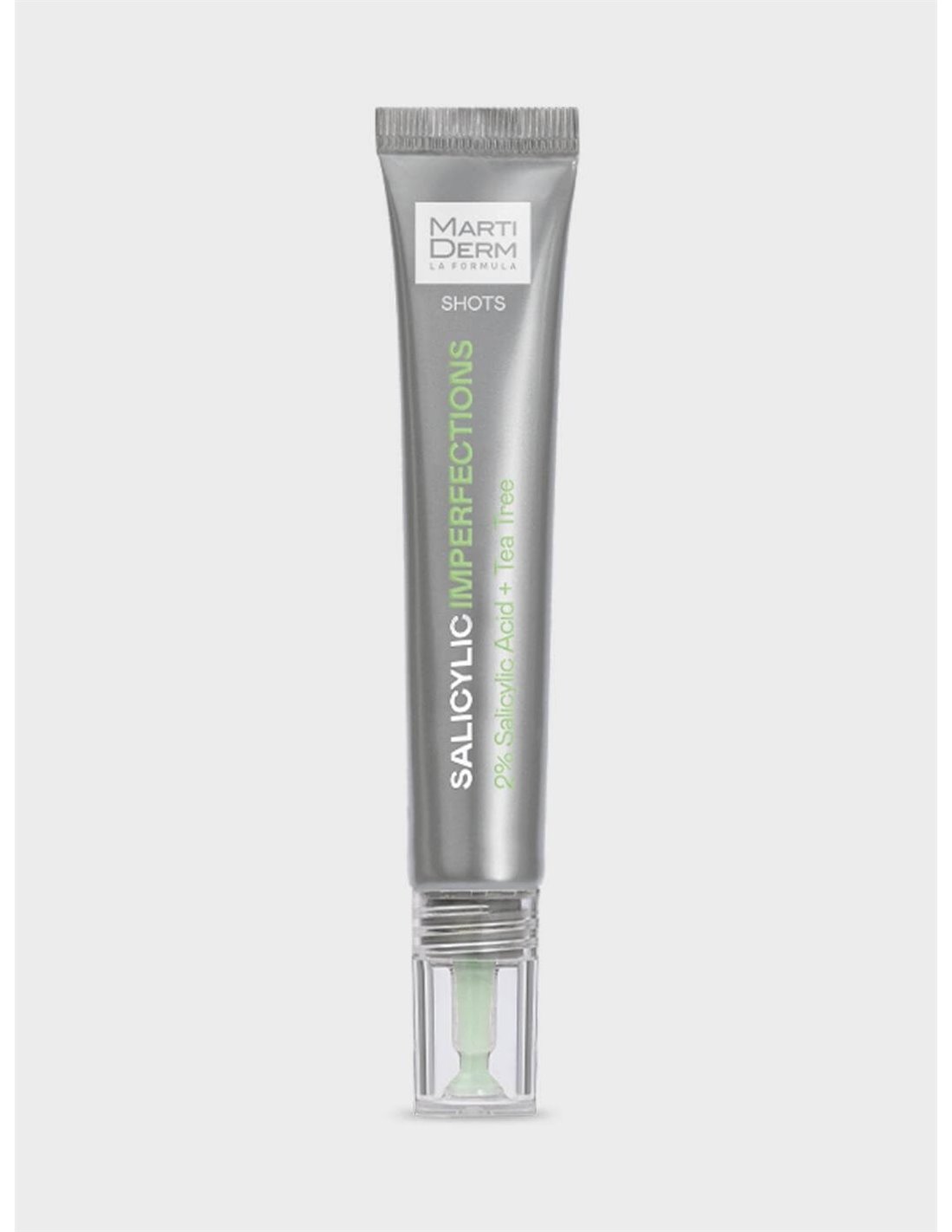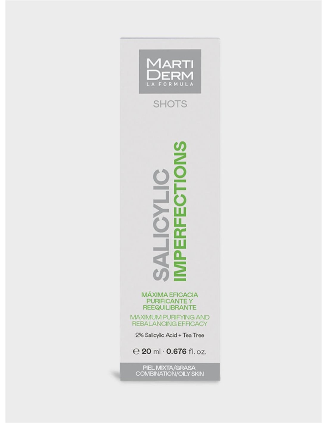 Martiderm Shot Salicylic Imperfections 20ml es un tratamiento facial que ayuda a purificar la superficie cutánea y a unificar el tono de la tez, mientras potencia la suavidad.