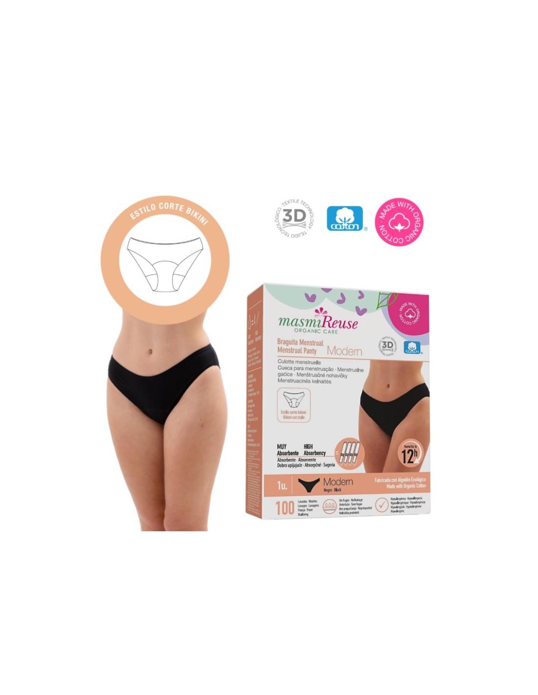 Características y Beneficios del Pack 6 Uds. Braguita Menstrual MODERN Talla S de Masmi