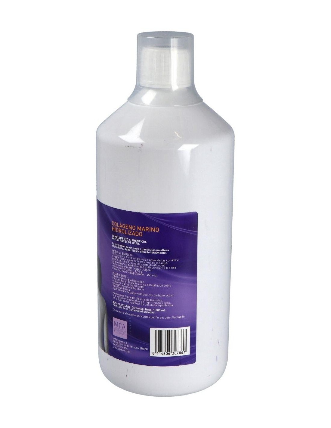 Silicio Biodisponible (SI) - (ácido silícico estabilizado sobre colágeno marino hidrolizado), Colágeno marino hidrolizado, Agua desmineralizada y tratada con carbono activo, Excipiente c.s.p.