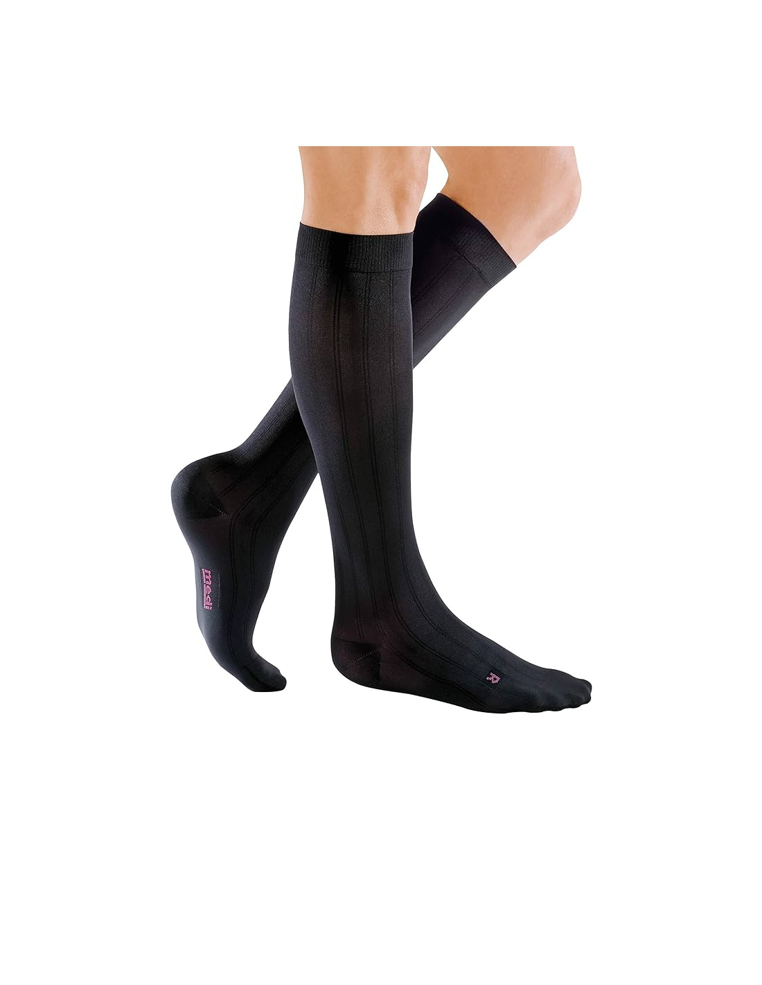 Calcetines Compresivos Mediven For Men para el estilo de negocios moderno: MEDIVEN FOR MEN es una media de compresión médica de punto circular que visualmente no se diferencia de una media de moda para hombres. Debido a la resistencia del material, el ajuste y las propiedades del producto, MEDIVEN FOR MEN se recomienda para hombres de peso normal con poca o ninguna hinchazón en las piernas y también para tejido conjuntivo blando.