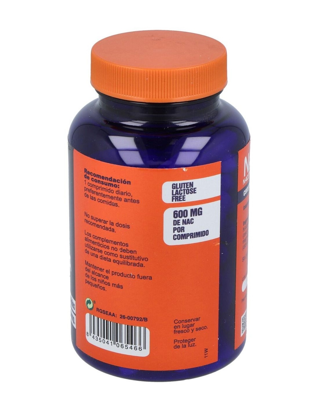 El suplemento está compuesto principalmente por N-Acetilcisteína en forma de comprimidos, diseñados para una dosificación práctica y cómoda. Su presentación en envase cerrado asegura la conservación adecuada del producto durante su uso habitual.