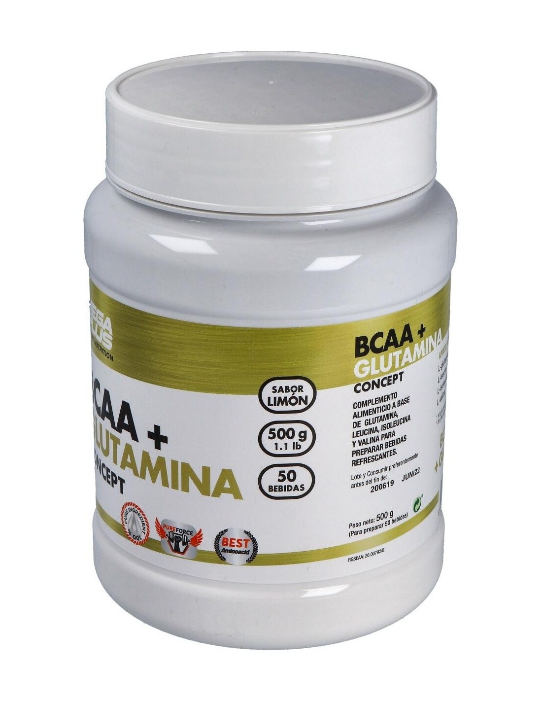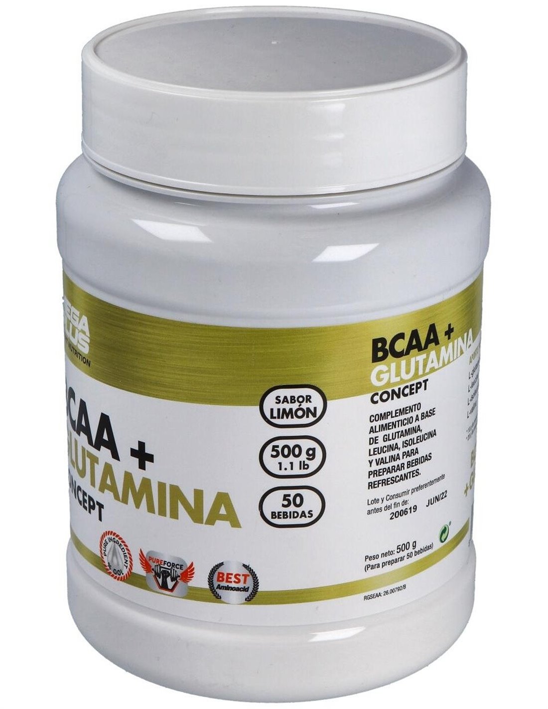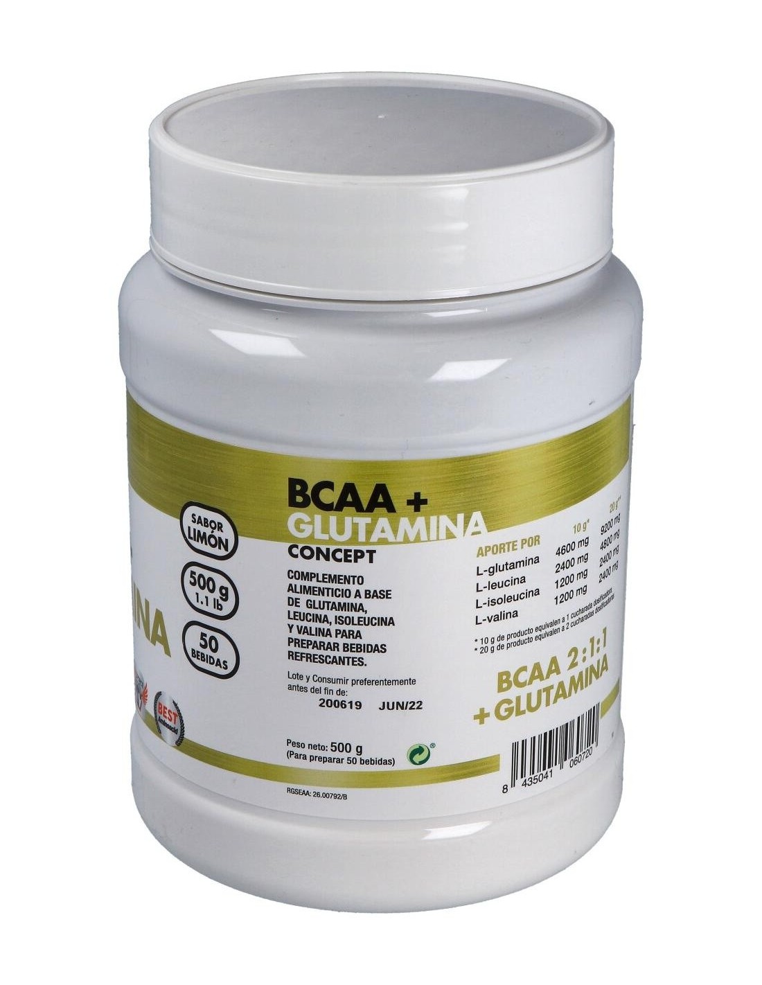 Bcaa+Glutamina Concept Limon 500Gr. de Mega Plus
