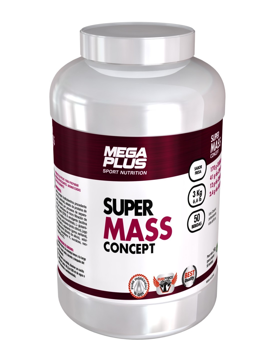El Super Mass Concept Choco 3kg de Mega Plus es un suplemento de ganancia de masa para deportistas que aporta proteínas y carbohidratos equilibrados, facilitando la recuperación y el aumento de peso corporal.