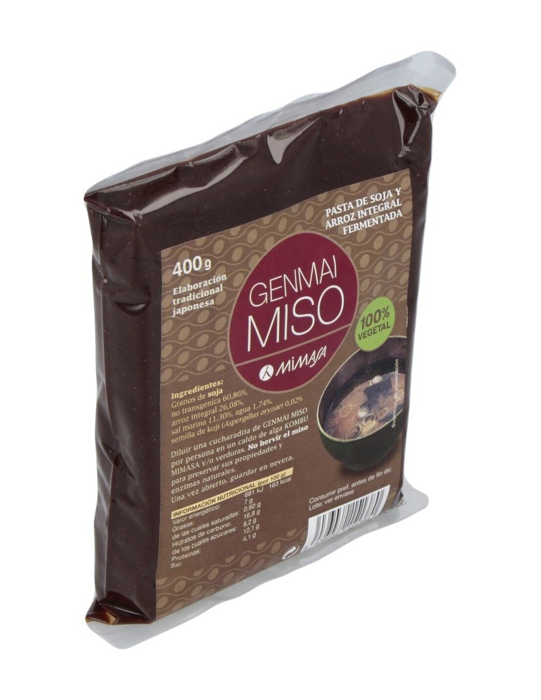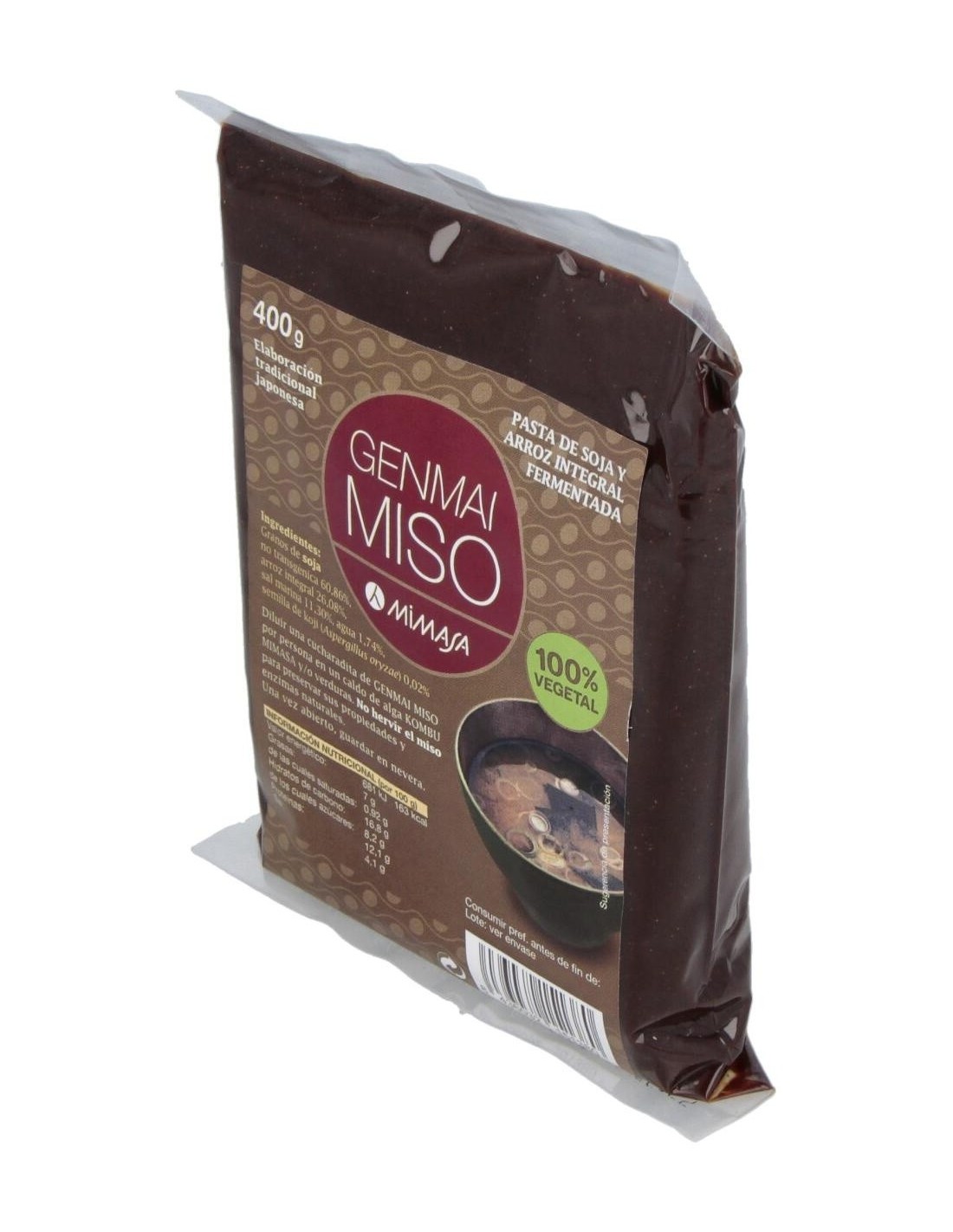 El Genmai Miso 400Gr. de Mimasa es una pasta de miso integral dirigida a consumidores interesados en la cocina saludable. Aporta sabor y nutrientes naturales gracias a su fermentación tradicional con arroz integral.
