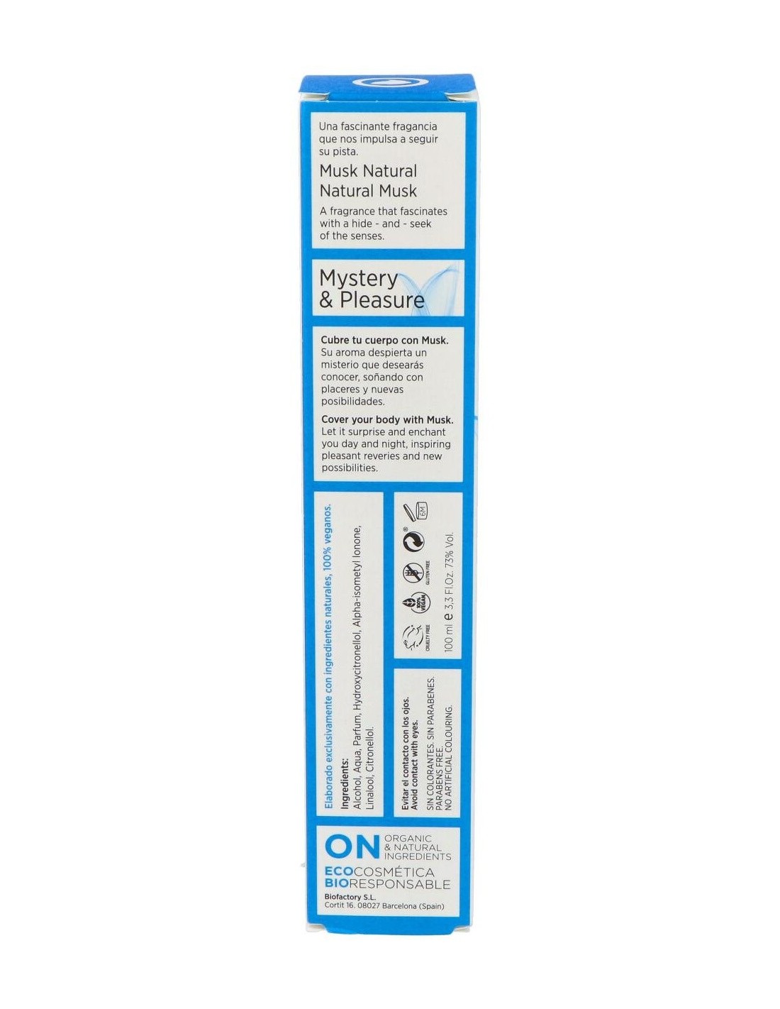 Con aroma inspirado en el olor del almizcle. Producto apto para veganos.