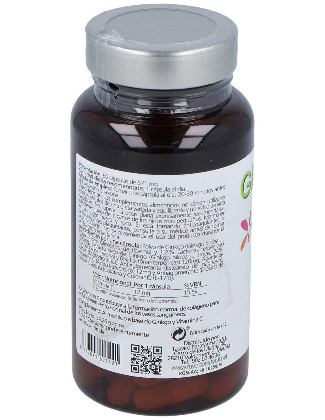 Ginkgotonic 420Mg. 60Cap. de Mundonatural es un suplemento diseñado para personas interesadas en complementar su rutina diaria con ingredientes naturales que apoyan el bienestar general. Su formulación está pensada para quienes buscan una opción práctica y dosificada para su consumo habitual.