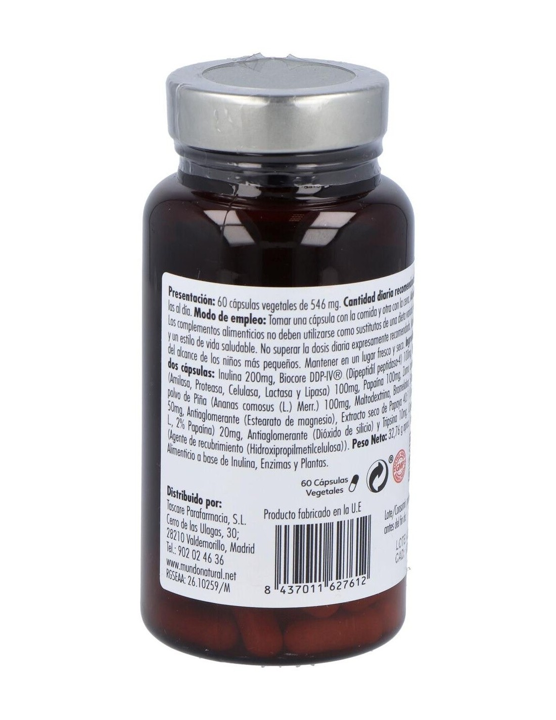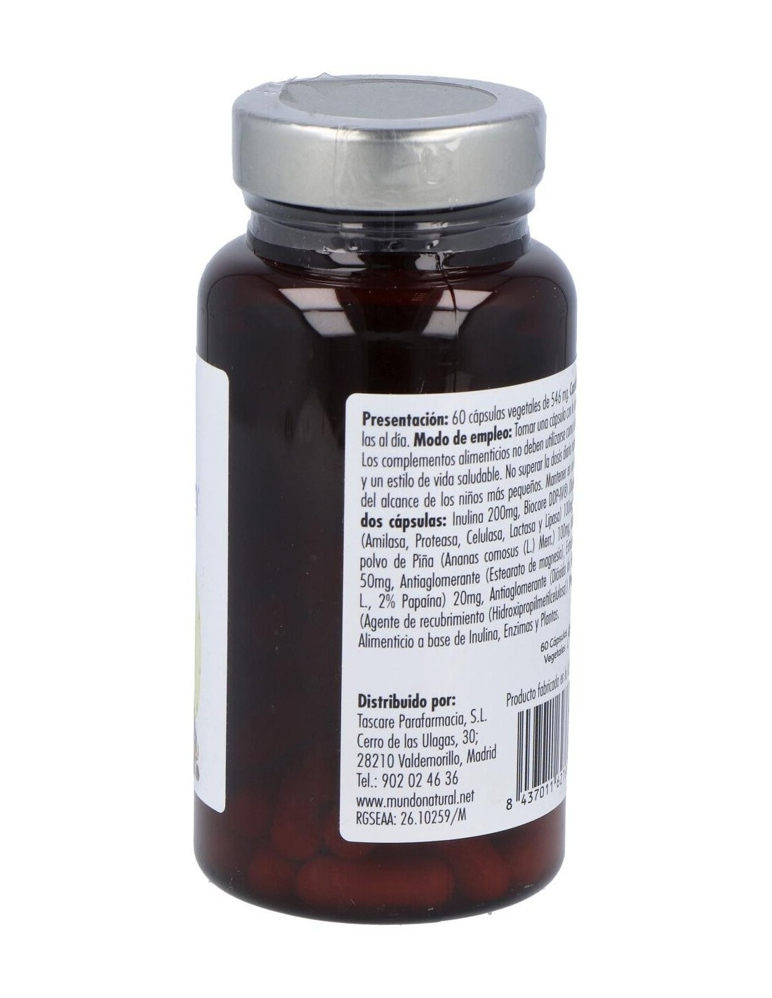 Gastroenzym 60Cap. de Mundonatural es un suplemento diseñado para personas que buscan apoyar su bienestar digestivo mediante una fórmula equilibrada. Está pensado para quienes desean complementar su dieta con ingredientes que contribuyen a una digestión más cómoda y eficiente.