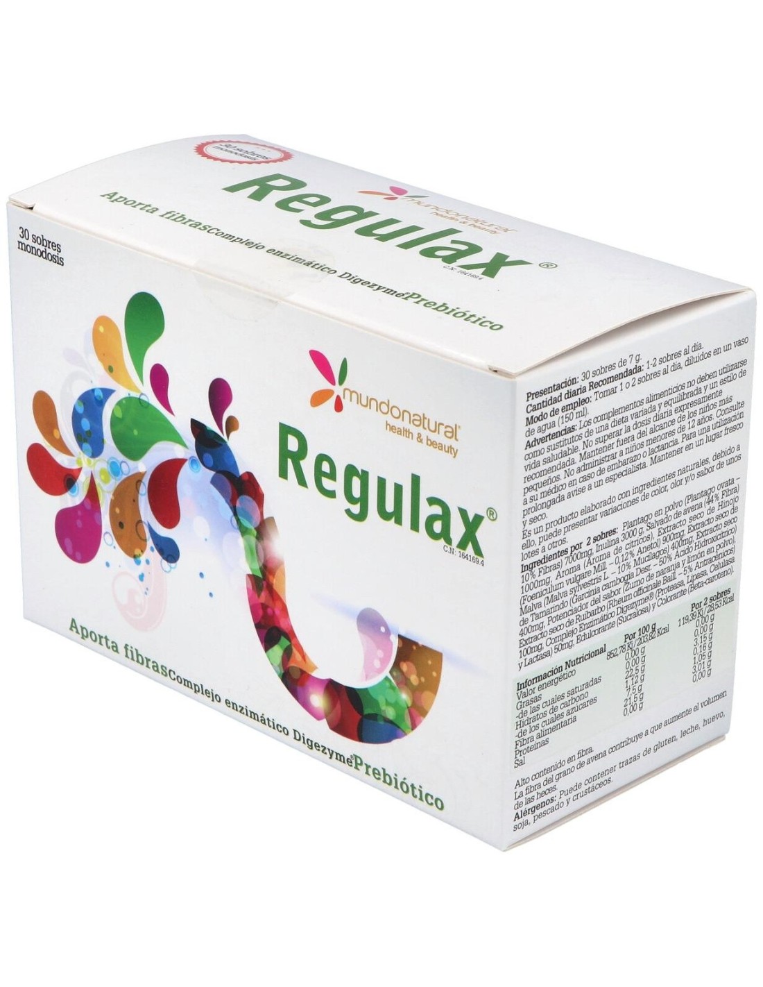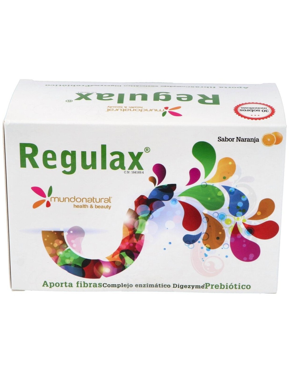 Regulax 30Sbrs. de Mundonatural es un suplemento natural para personas que buscan apoyar su bienestar digestivo, formulado con ingredientes que favorecen el equilibrio intestinal y la regularidad.