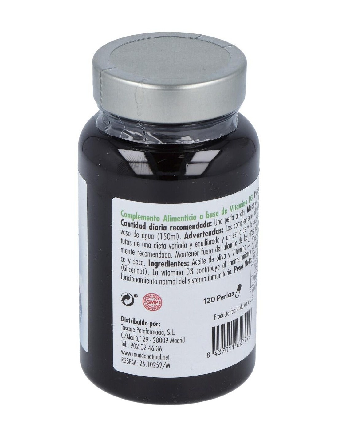 Vita D3 4000Ui 120Perlas de Mundonatural ofrece una forma conveniente y dosificada de integrar vitamina D3 en la alimentación diaria, contribuyendo a mantener un aporte adecuado de este nutriente.