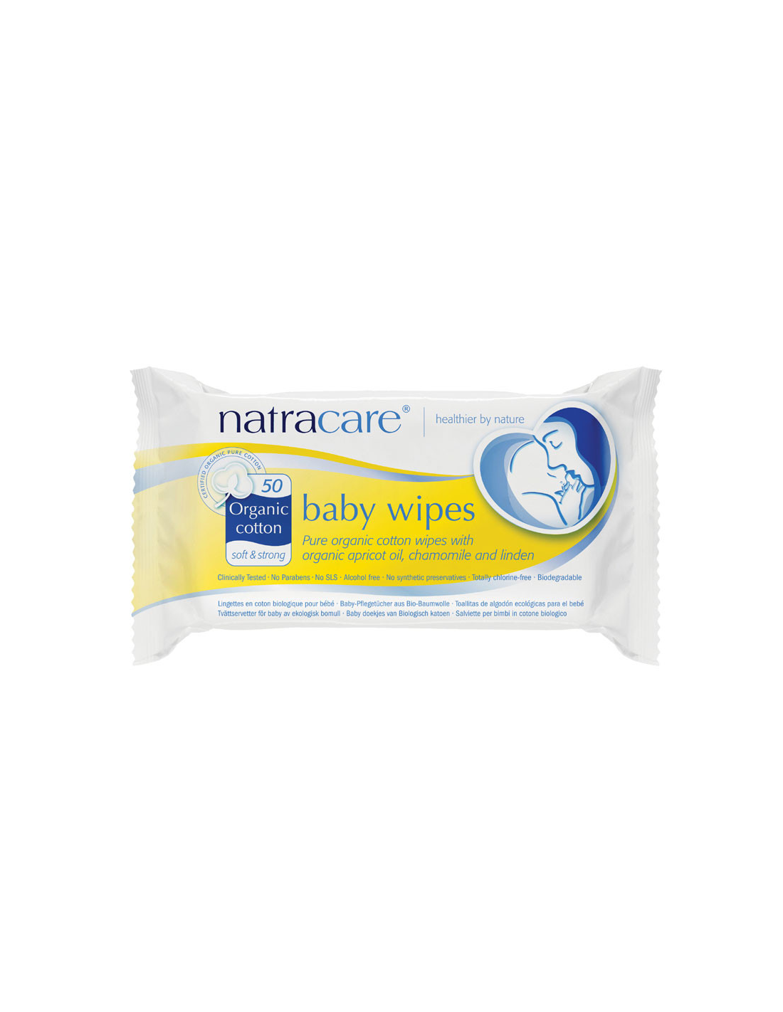 Toallitas ecológicas suaves y delicadas para el uso diario en la delicada piel del bebé. Con un tejido de algodón orgánico con una base de aceites esenciales ecológicos de camomila, melocotón y almendra dulce. Todo estos componentes limpian y refrescan, dejando la piel limpia y suave. Certificadas por la Soil Association. Una fórmula delicada que no contiene ni detergentes como laurilsulfato de sodio (SLS) o alguno de sus parientes cercanos, ni parabenos o SHG, ni otro tipo de conservantes que liberan formaldehído.