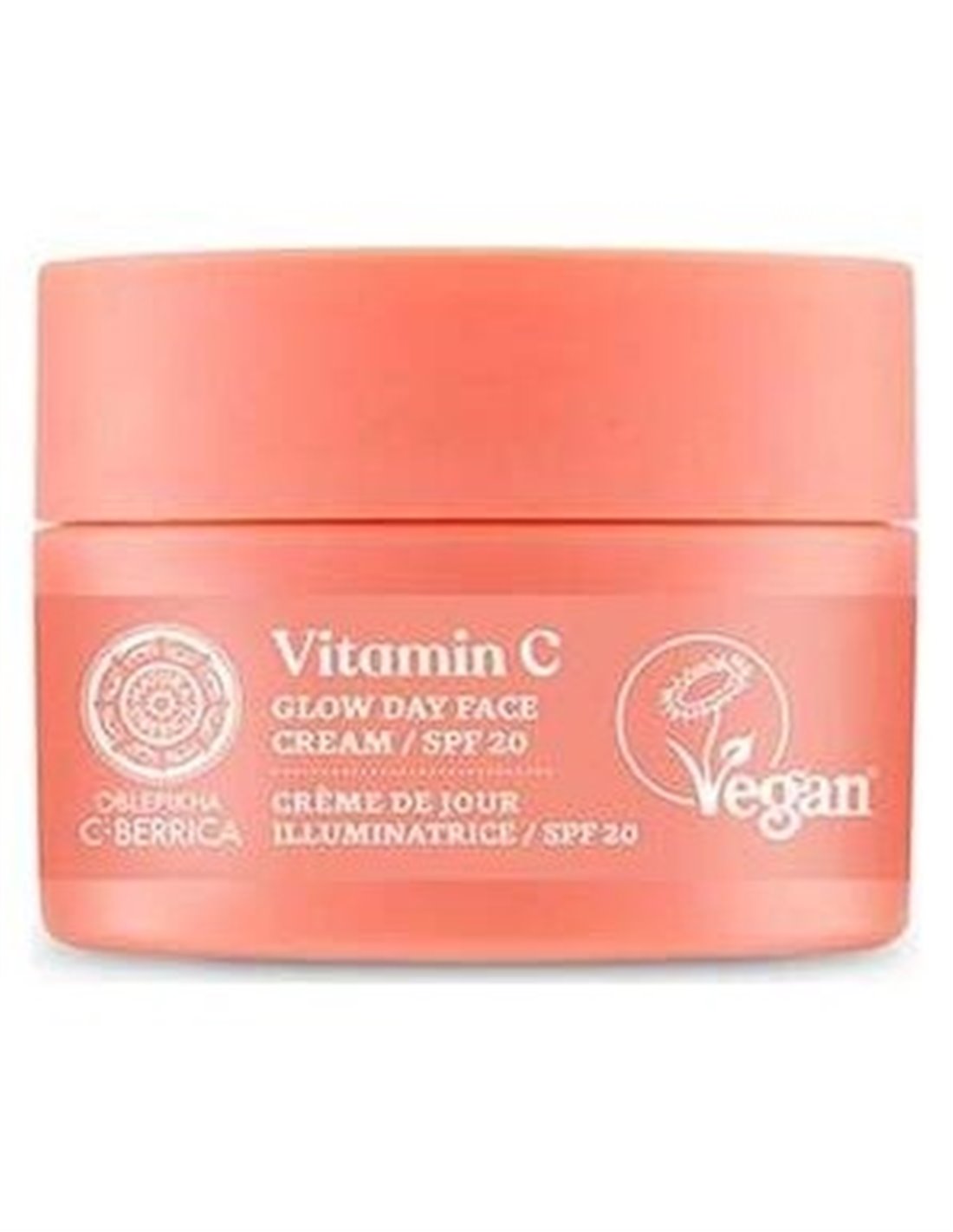 NATURA SIBERICAEsta crema iluminadora protege la piel del estrés oxidativo, reduce signos del cansancio y recupera su brillo y luz natural. El aceite de oblepikha de Altái, un ingrediente único con una alta concentración de polifenoles y vitaminas, hidrata la piel y estimula la formación de colágeno, una proteína estructural esencial para preservar la juventud de la piel. La vitamina C ayuda a mejorar las defensas de la piel y acelera su proceso de regeneración. La niacinamida es un excelente antioxidante que combate y disminuye la aparición de los primeros signos de envejecimiento de la piel. Tiene una acción despigmentante que ayuda a unificar el tono, calmante y reguladora. Además, tiene protección SPF20. Cosmético vegano.