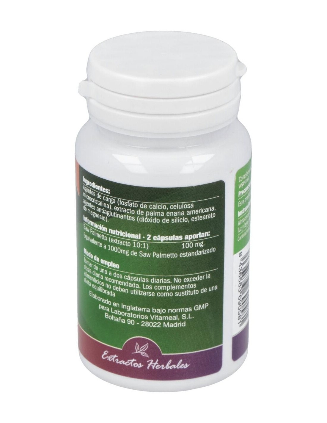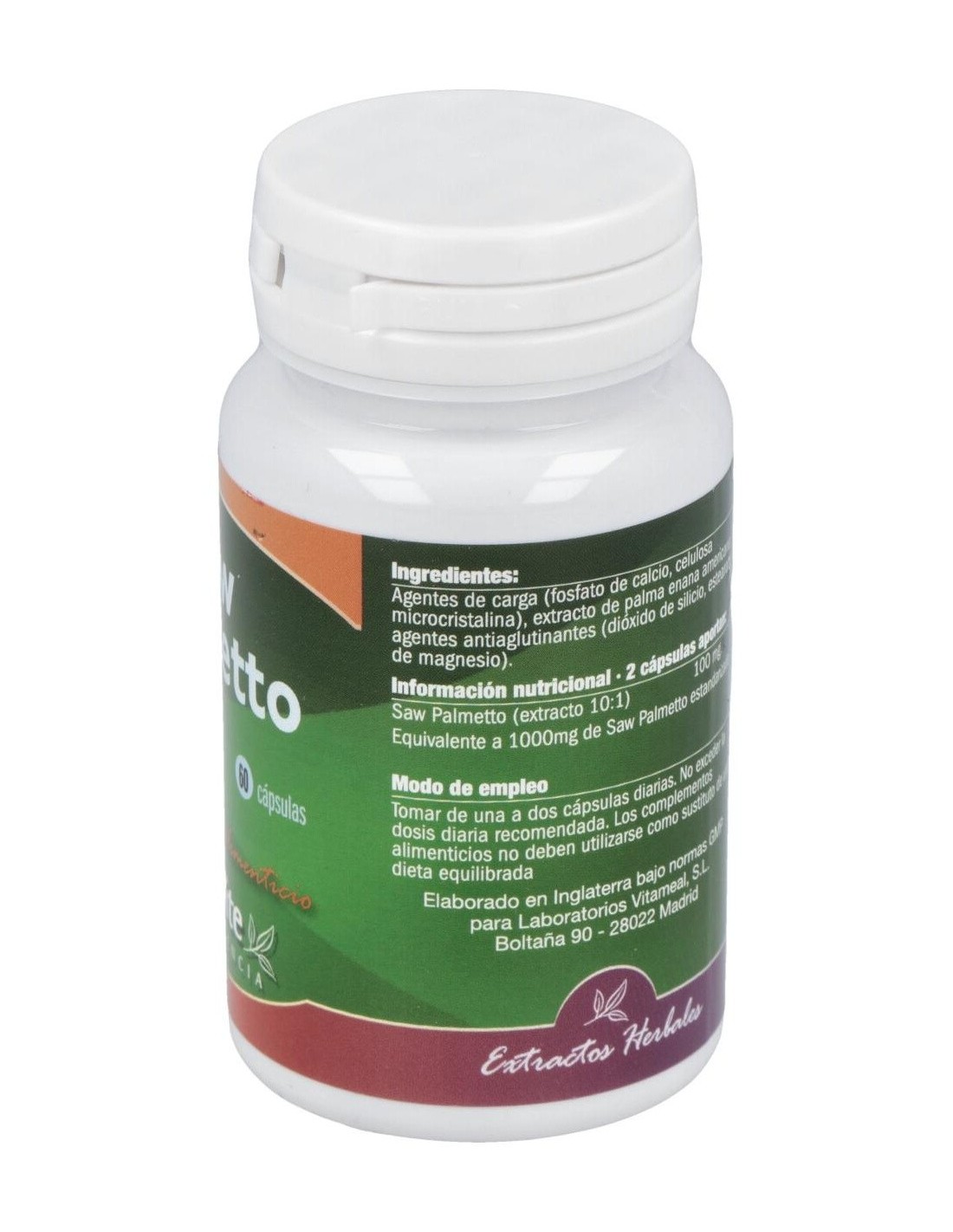 Complemento alimenticio formulado con base de extracto de Saw palmetto, una planta enana de originaria del norte de México y sudeste de los Estados Unidos.? Este componente natural presenta una notable acción diurética y antiséptica.