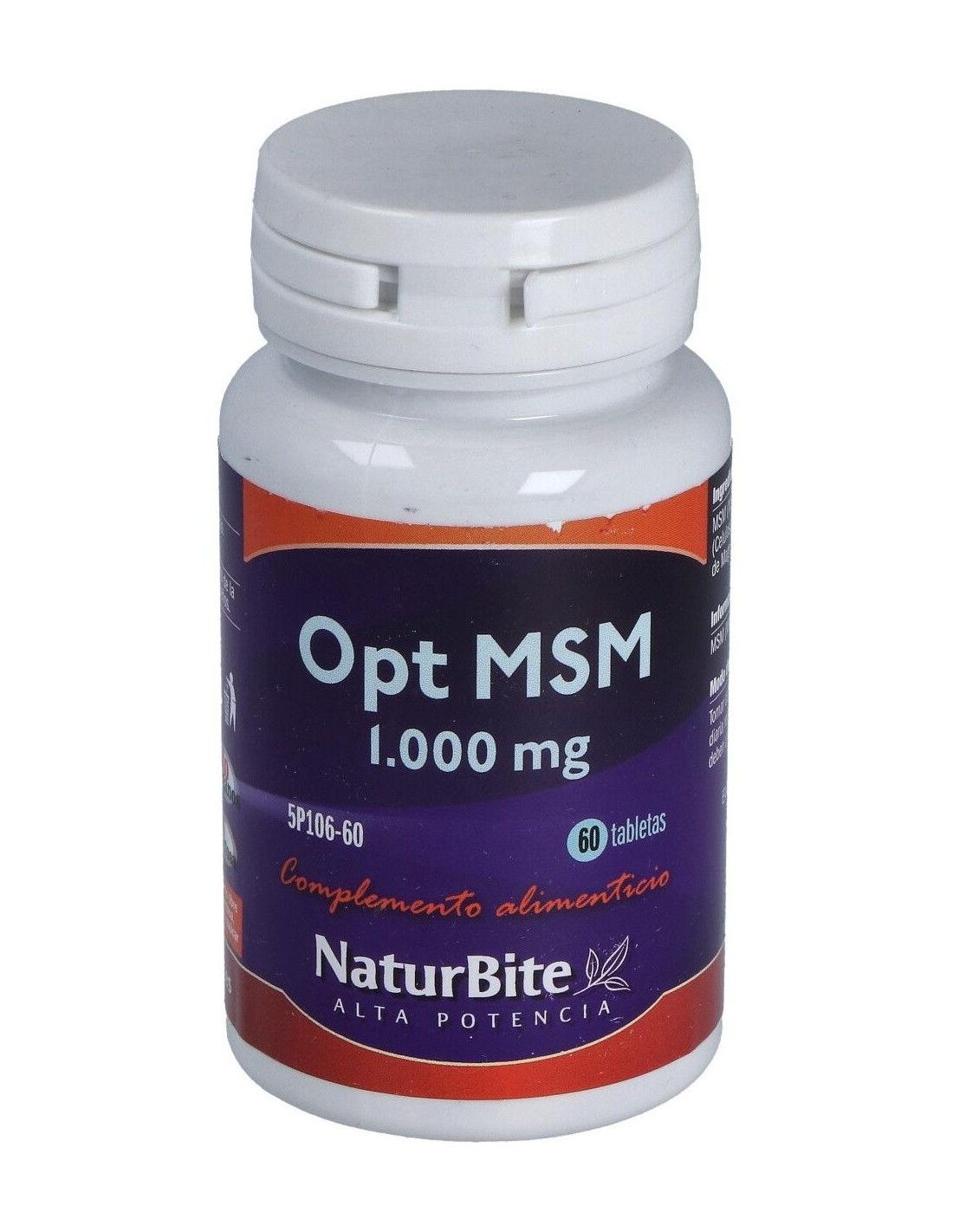 MSM (Metilsulfonilmetano) 1.000 mg, Celulosa microcristalina, Estearato de magnesio, Dióxido de silicio.