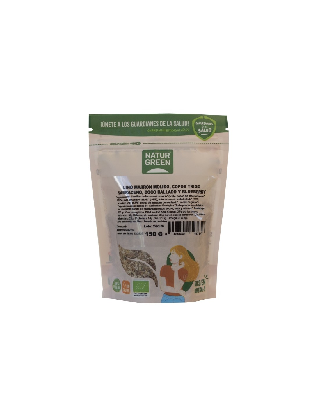 NATURGREEN PACKCaracterísticas y Beneficios del Pack 9 Uds. Semillas de Lino, Trigo Sarraceno, Coco, Blueberry Bio 150 g de Naturgreen