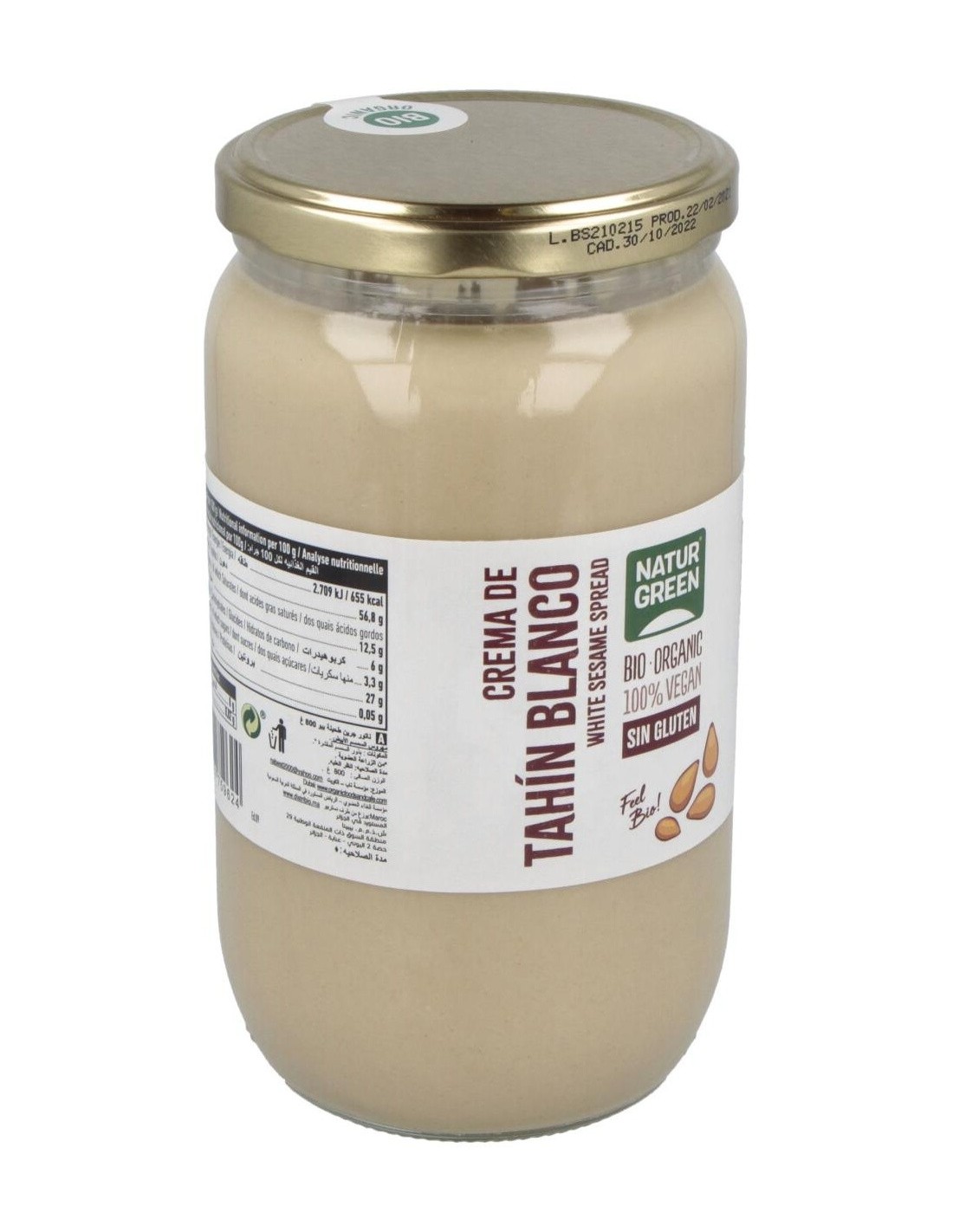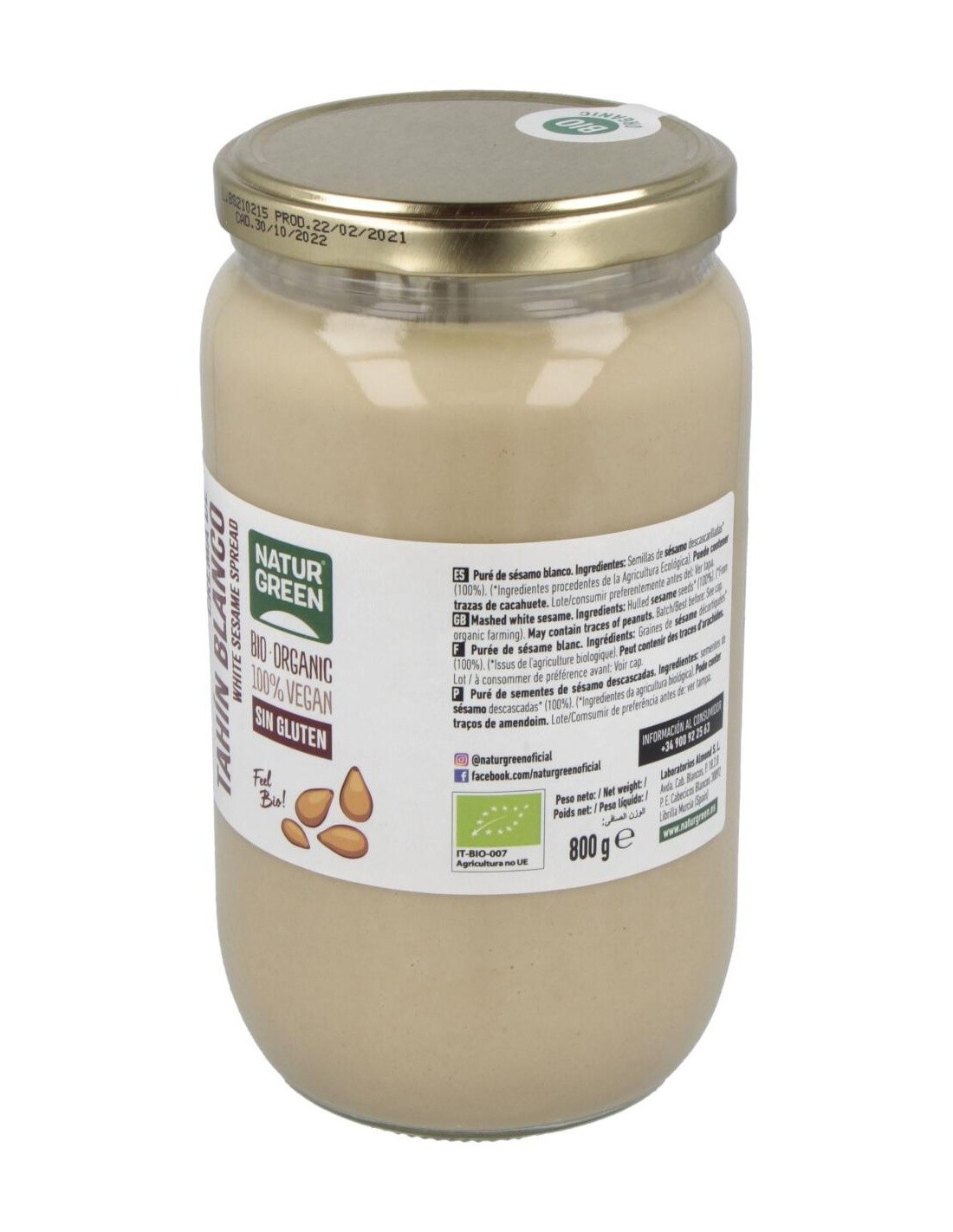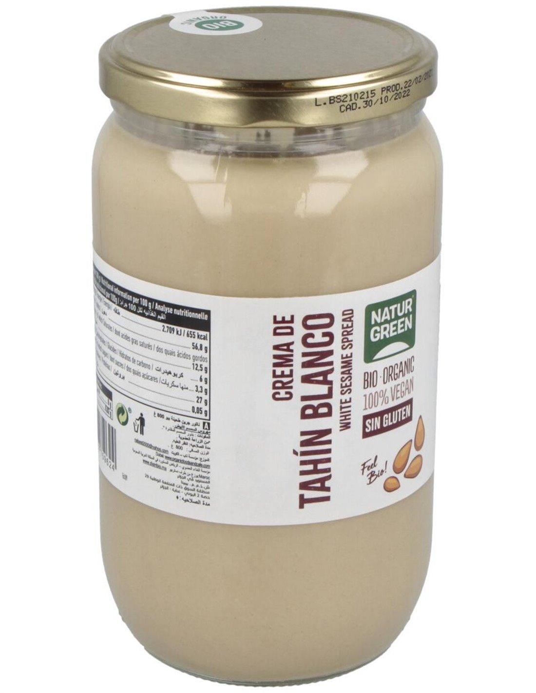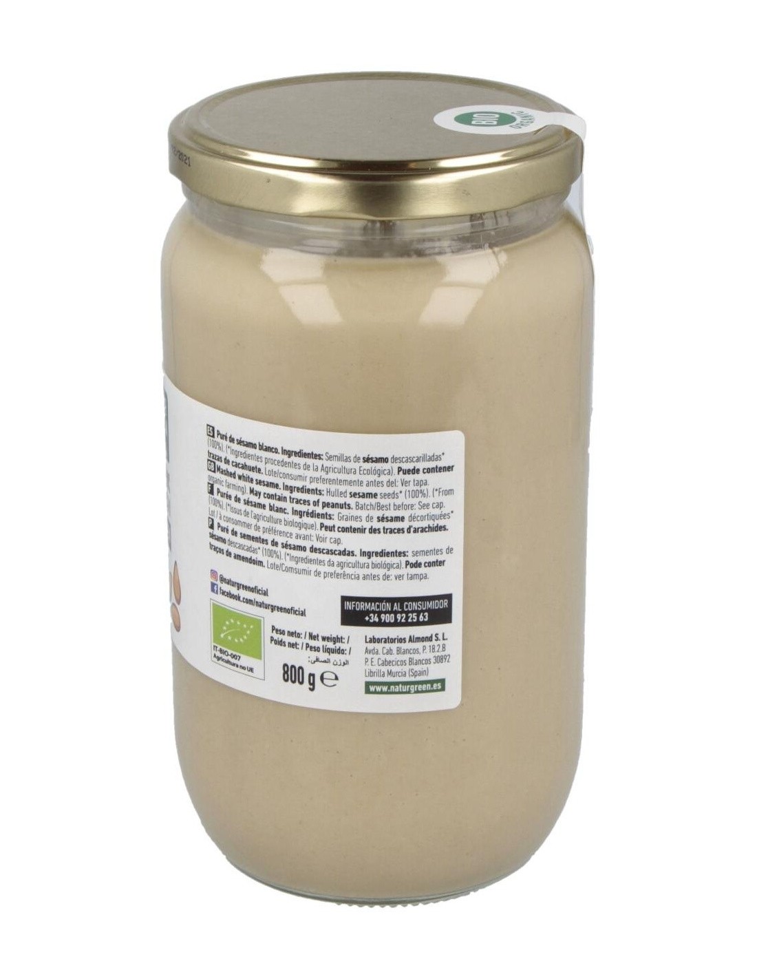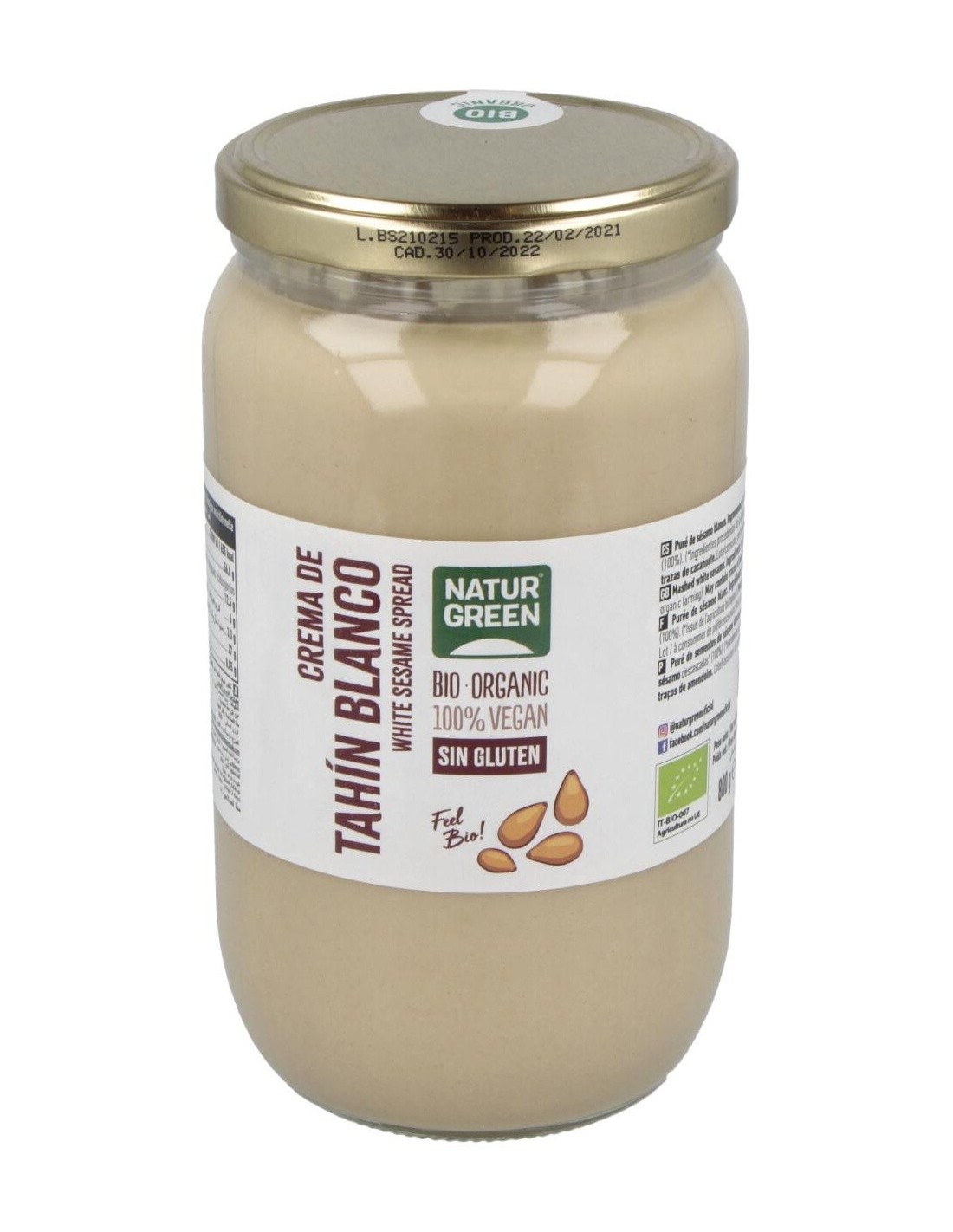 Naturgreen Tahín Ecológico De Sésamo 800 G es una crema vegetal para untar o cocinar, elaborada puramente de semillas de sésamo crudo. También se le denomina puré de sésamo.