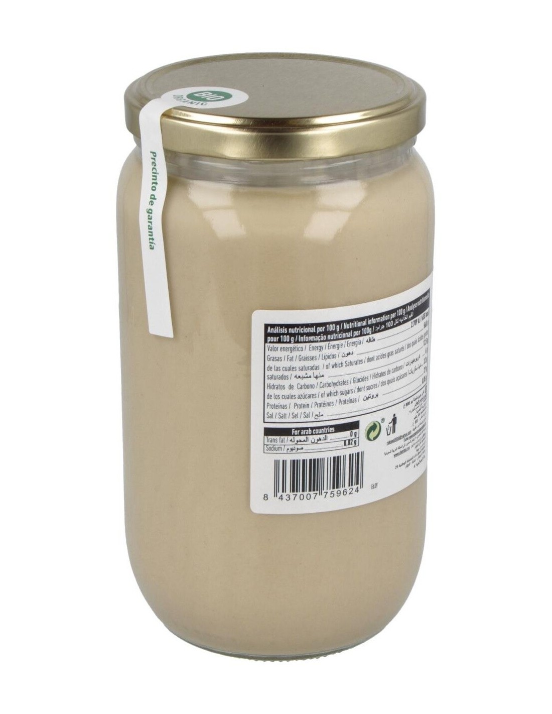 Este tahín está elaborado mediante un proceso que conserva las propiedades naturales del sésamo, asegurando un producto con consistencia cremosa y sabor auténtico. Su envase está diseñado para mantener la frescura y facilitar su almacenamiento.