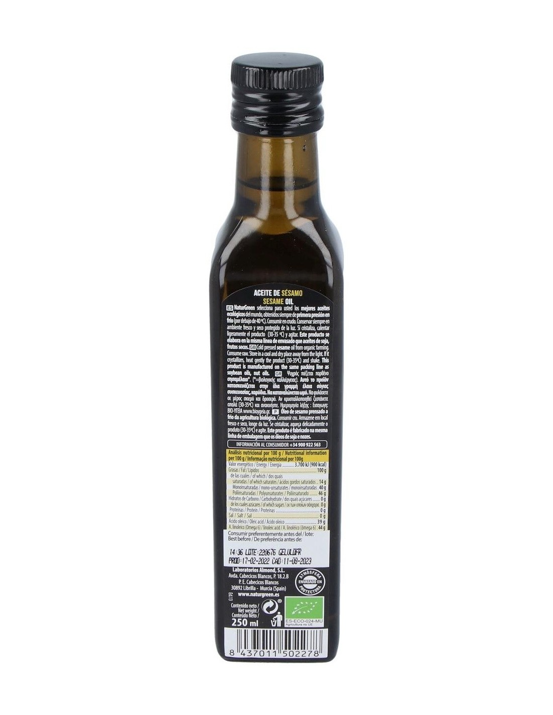 Ingredientes:100% Aceite de semillas de sésamo ecológico.Valor nutricional por 100 gramos:
