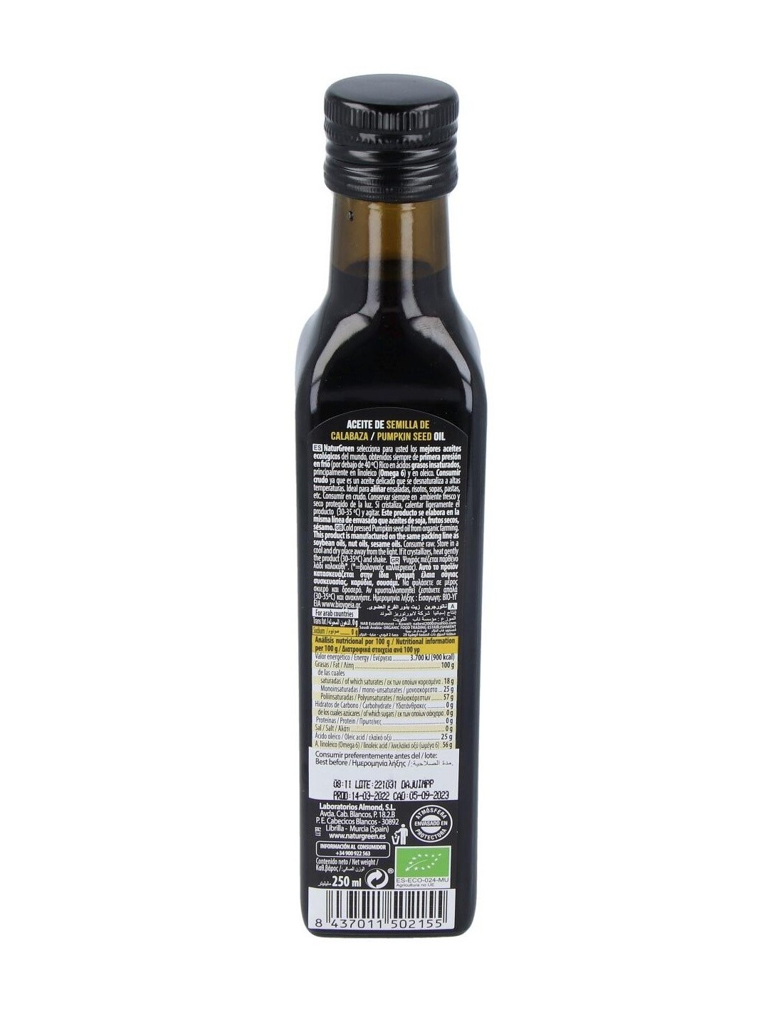 Ingredientes:100% Aceite de semillas de calabaza ecológico.Valor nutricional por 100 gramos: