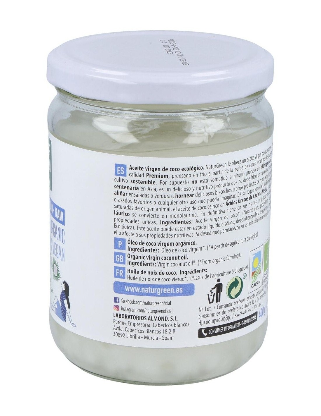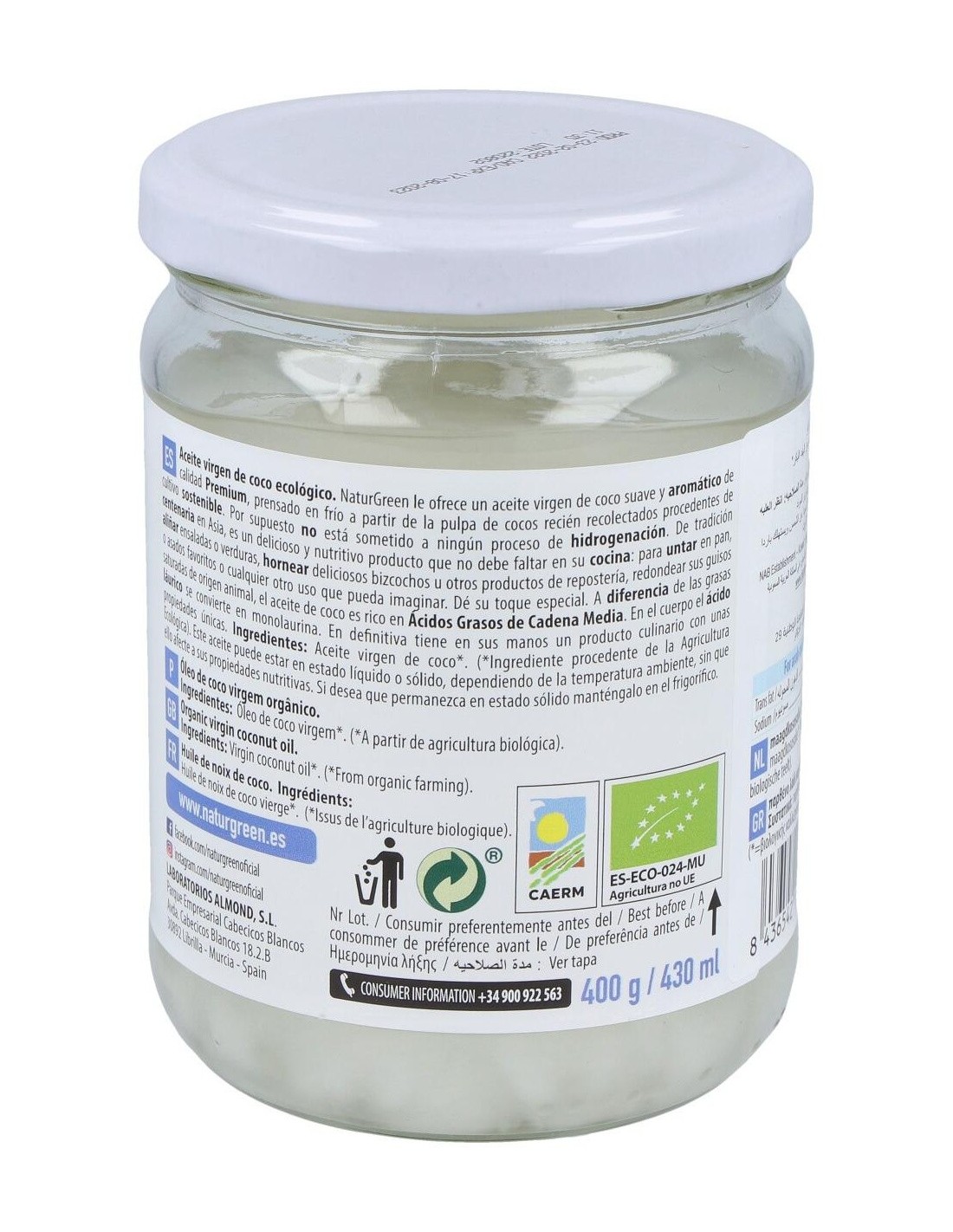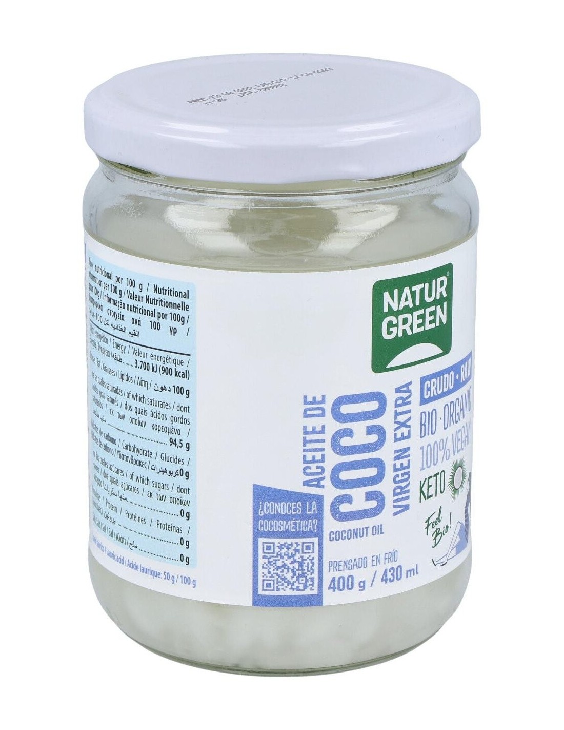 El Aceite Virgen de Coco 400g de Naturgreen combina una composición natural con un formato práctico, ofreciendo una opción versátil para quienes valoran productos con origen y calidad definidos.
