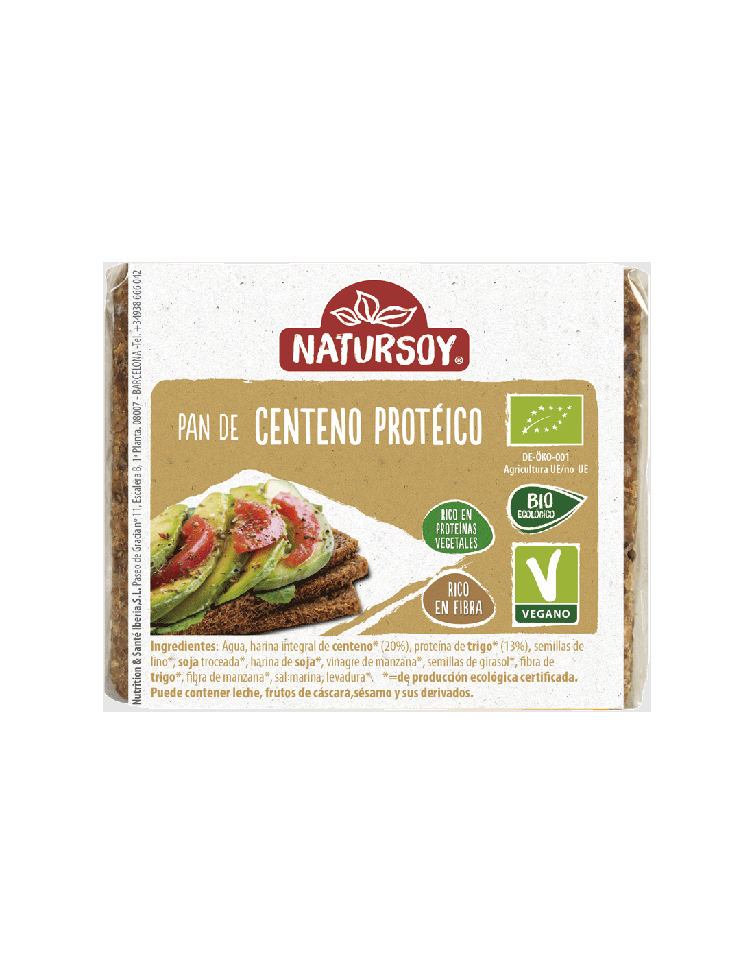 Pan de Centeno Protéico de Natursoy es un pan rico en proteìnas vegetales, rico en fibra.