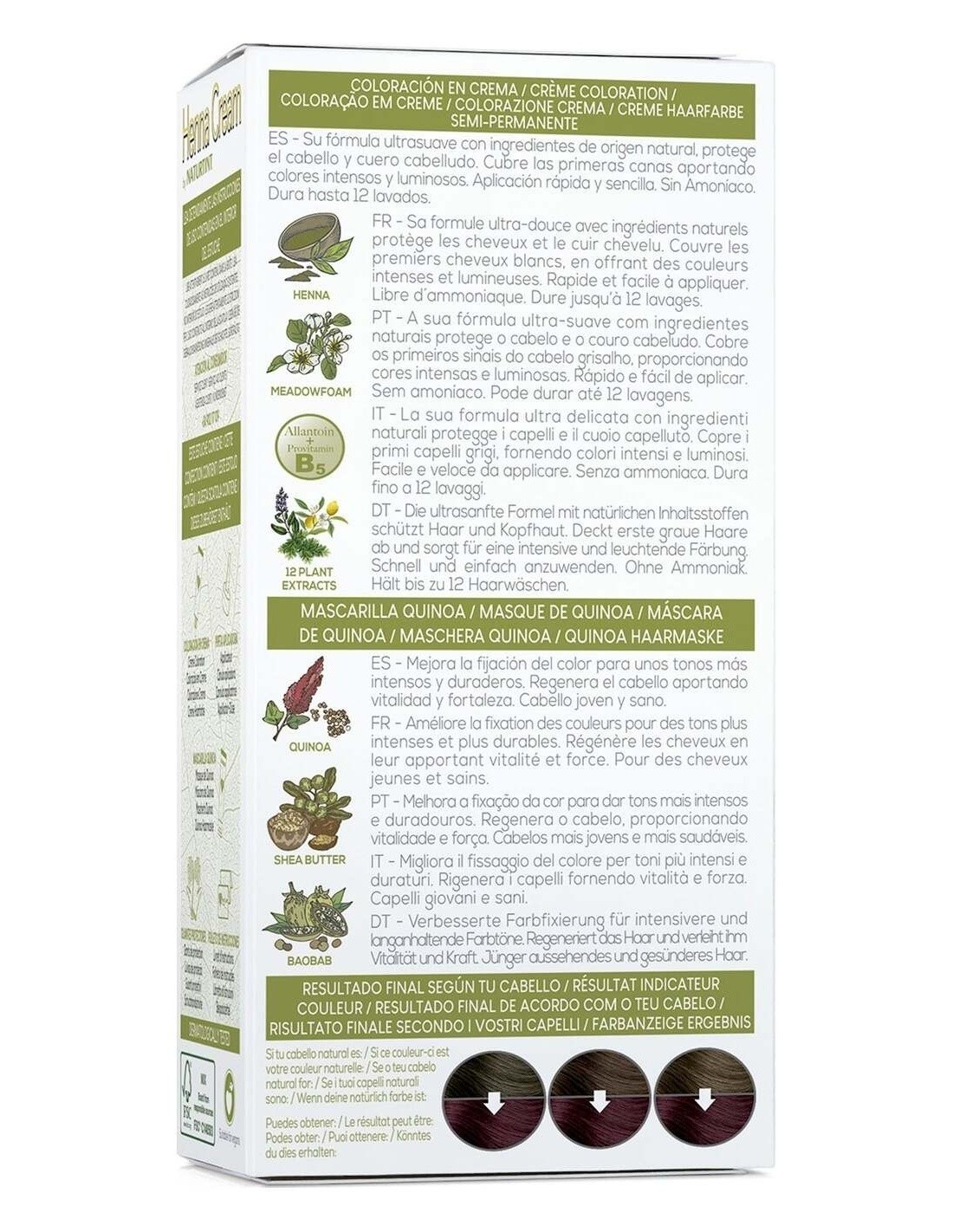 HENNA CREAM COLOURANT 60 ml: AQUA (PURIFIED WATER). BUTYLENE GLYCOL COCOATE. CETYL ALCOHOL. PROPANEDIOL. TRIETHANOLAMINE. PEG-2 DIMEADOWFOAMAMIDOETHYLMONIUM METHOSULFATE. CETEARYL ALCOHOL. GLYCERIN. LAWSONIA INERMIS LEAF EXTRACT. ROSMARINUS OFFICINALIS LEAF EXTRACT. CHAMOMILLA RECUTITA FLOWER EXTRACT. ARNICA MONTANA FLOWER EXTRACT. LAMIUM ALBUM EXTRACT. SALVIA OFFICINALIS LEAF EXTRACT. PINUS SYLVESTRIS BUD EXTRACT. NASTURTIUM OFFICINALE EXTRACT. ARCTIUM MAJUS ROOT EXTRACT. CITRUS LIMON PEEL EXTRACT. HEDERA HELIX LEAF EXTRACT. CALENDULA OFFICINALIS FLOWER EXTRACT. TROPAEOLUM MAJUS FLOWER EXTRACT. PANTHENOL. ALLANTOIN. HEXYLENE GLYCOL. CETEARETH-20. HYDROXYETHYLCELLULOSE. LAURETH-3. TETRASODIUM GLUTAMATE DIACETATE. PARFUM. SODIUM BENZOATE. POTASSIUM SORBATE. BASIC YELLOW 57. BASIC BROWN 16. BASIC BLUE 99. BASIC RED 51. BASIC RED 76. ACID VIOLET 43. CITRIC ACID. BENZYL SALICYLATE. LIMONENE. HEXYL CINNAMAL. LINALOOL.