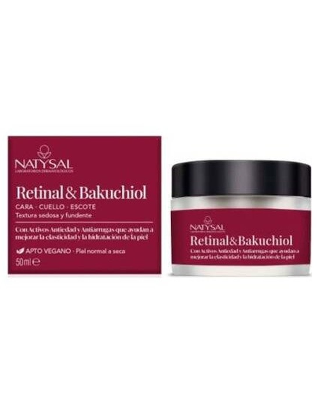 NATYSALCrema diaria con Retinal, el precursor directo del Ácido Retinoico que actúa 10 veces más rápido que las formas clásicas de Retinol. Este activo aumenta la elasticidad de la piel al disminuir el estrés oxidativo y promover la formación de colágeno. Además, es ideal para combatir las arrugas y la flacidez, e iluminar la piel de forma natural y sin producir irritaciones. Esta crema también contiene Bakuchiol, la Alternativa Natural al Retinol. Con textura sedosa y fundente. Producto apto para veganos.