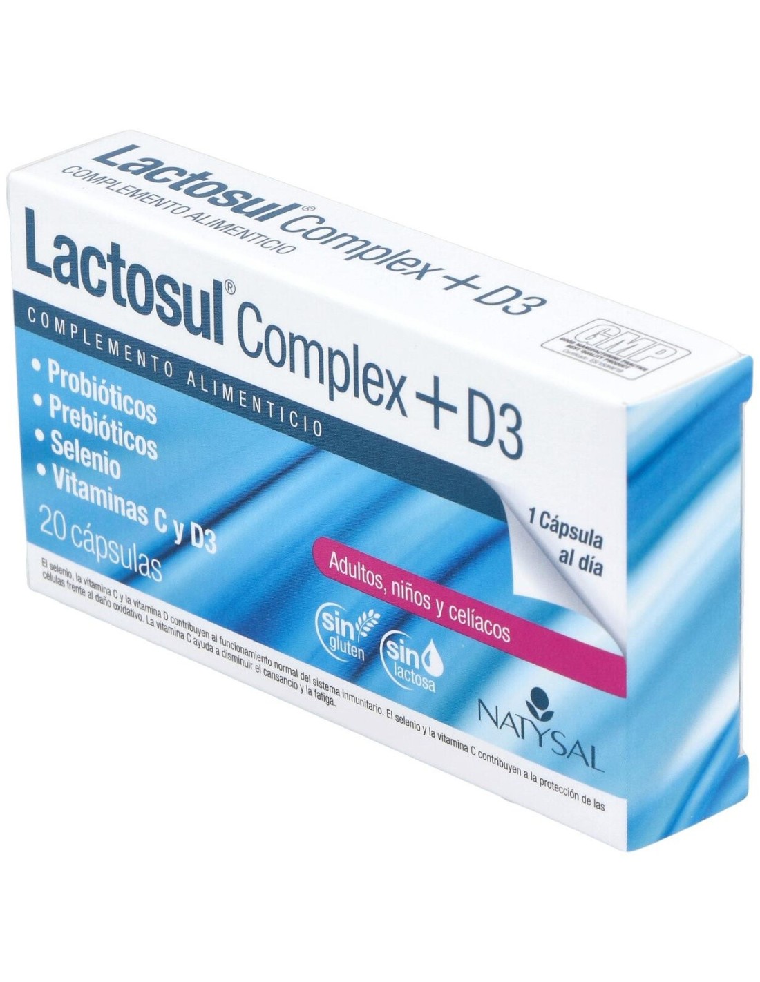 Lactosul Complex + D3 20 Cáps. de Natysal es un suplemento diseñado para personas que buscan apoyar su bienestar diario mediante una fórmula que combina ingredientes seleccionados para contribuir al equilibrio corporal. Es adecuado para quienes desean complementar su alimentación con nutrientes específicos en cápsulas de fácil consumo.