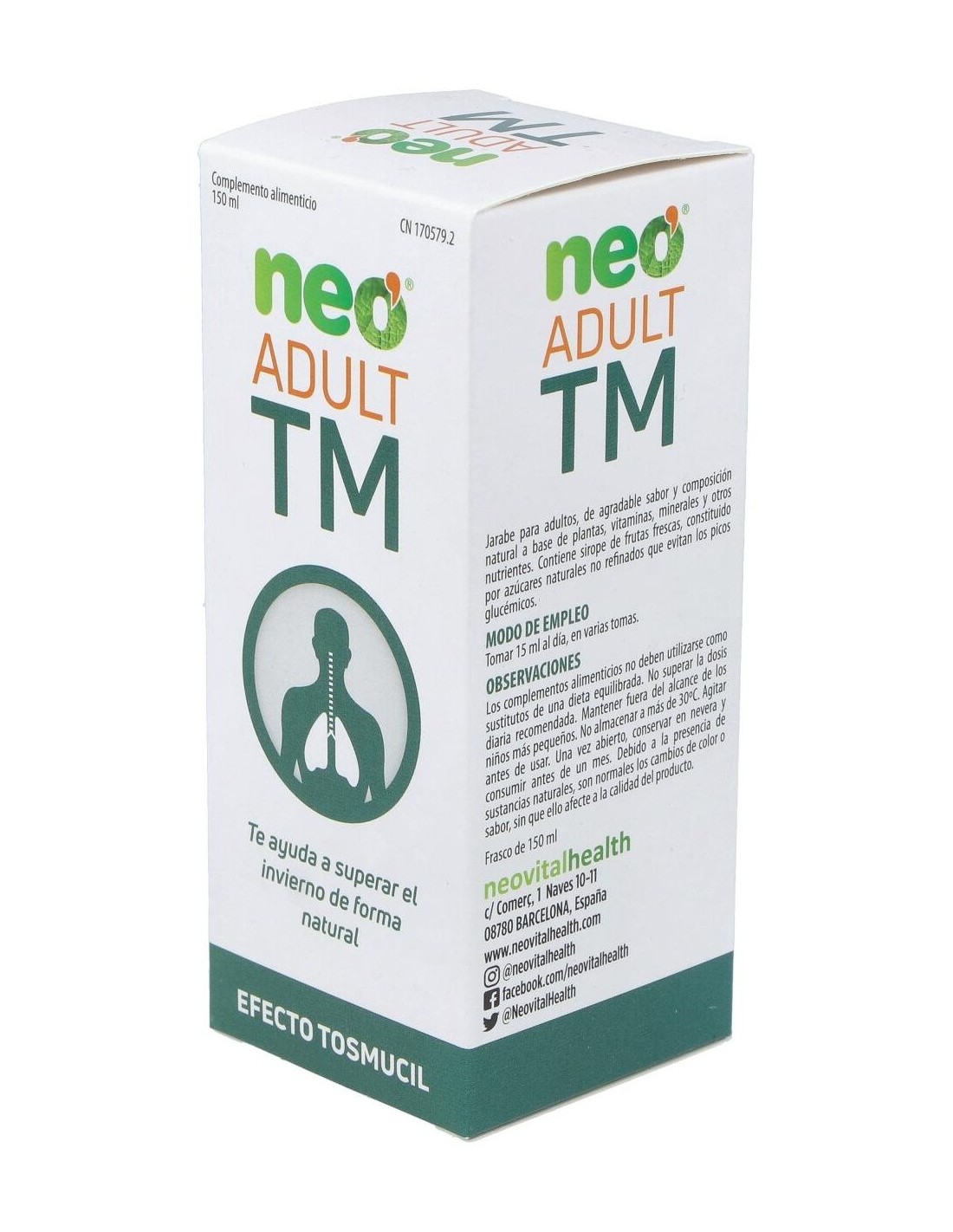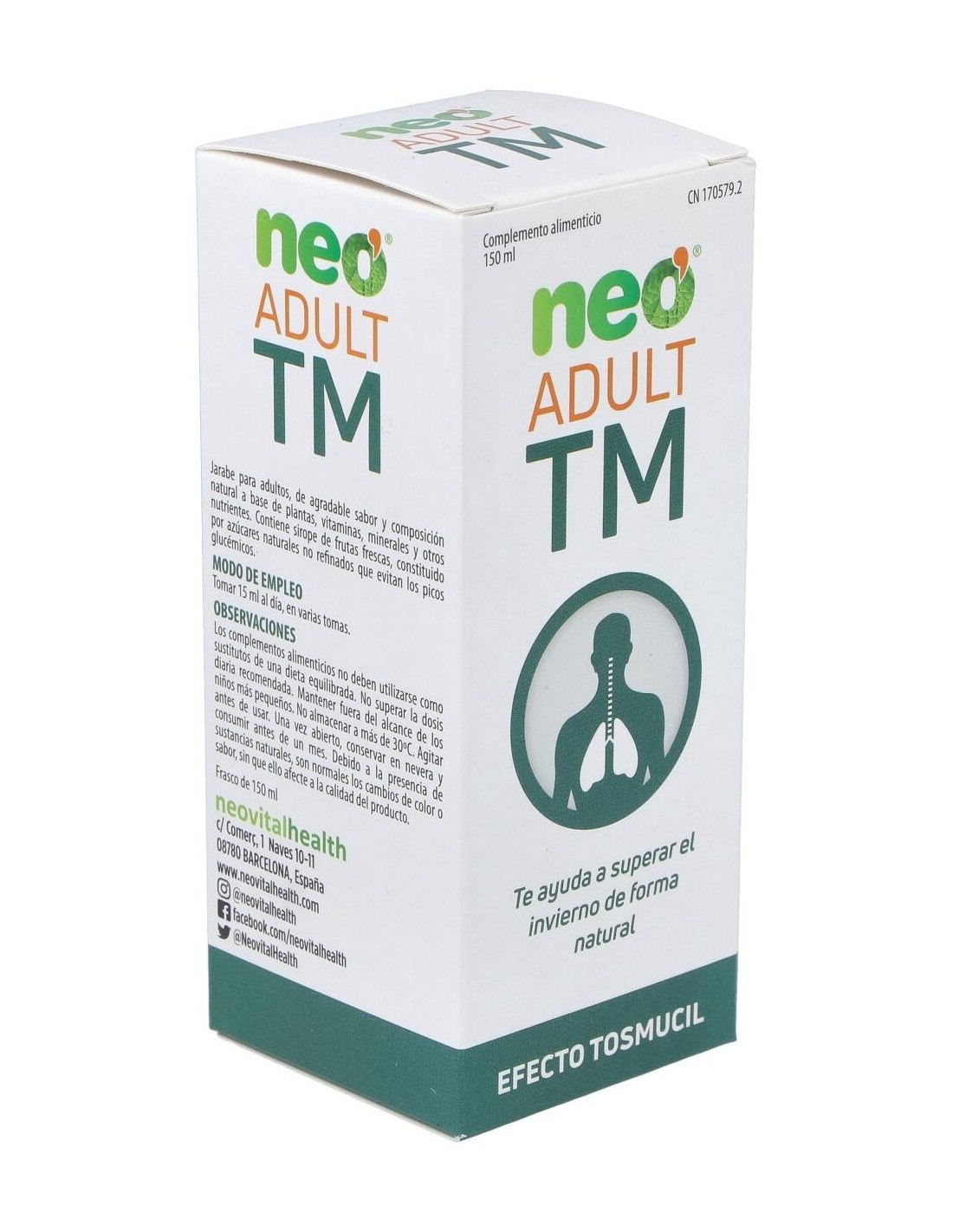 Neo Adult Tm Tosmucil Jarabe 150Ml. de Neo es un jarabe diseñado para adultos que buscan un apoyo en el alivio de molestias respiratorias comunes. Su formulación está pensada para facilitar la sensación de bienestar durante episodios de congestión y tos.