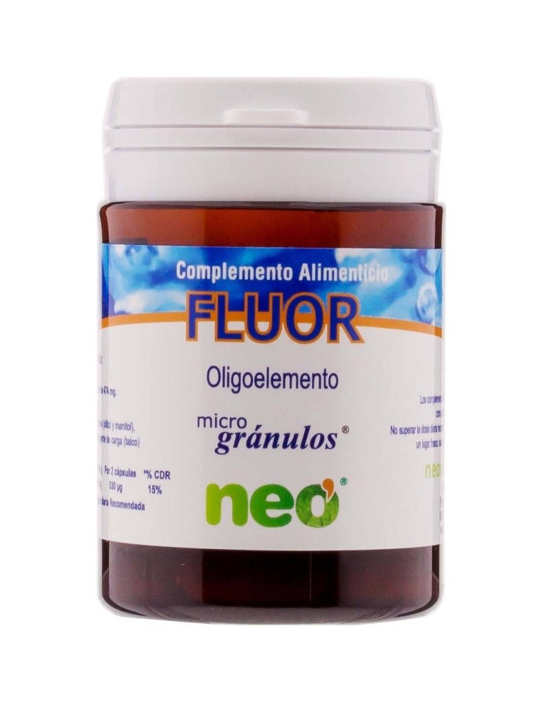 Fluor Microgranulos Neo 50Cap. de Neo es un suplemento diseñado para personas que buscan apoyar su bienestar diario mediante una fórmula en microgránulos de fácil absorción. Su presentación en cápsulas facilita la dosificación y el consumo habitual.