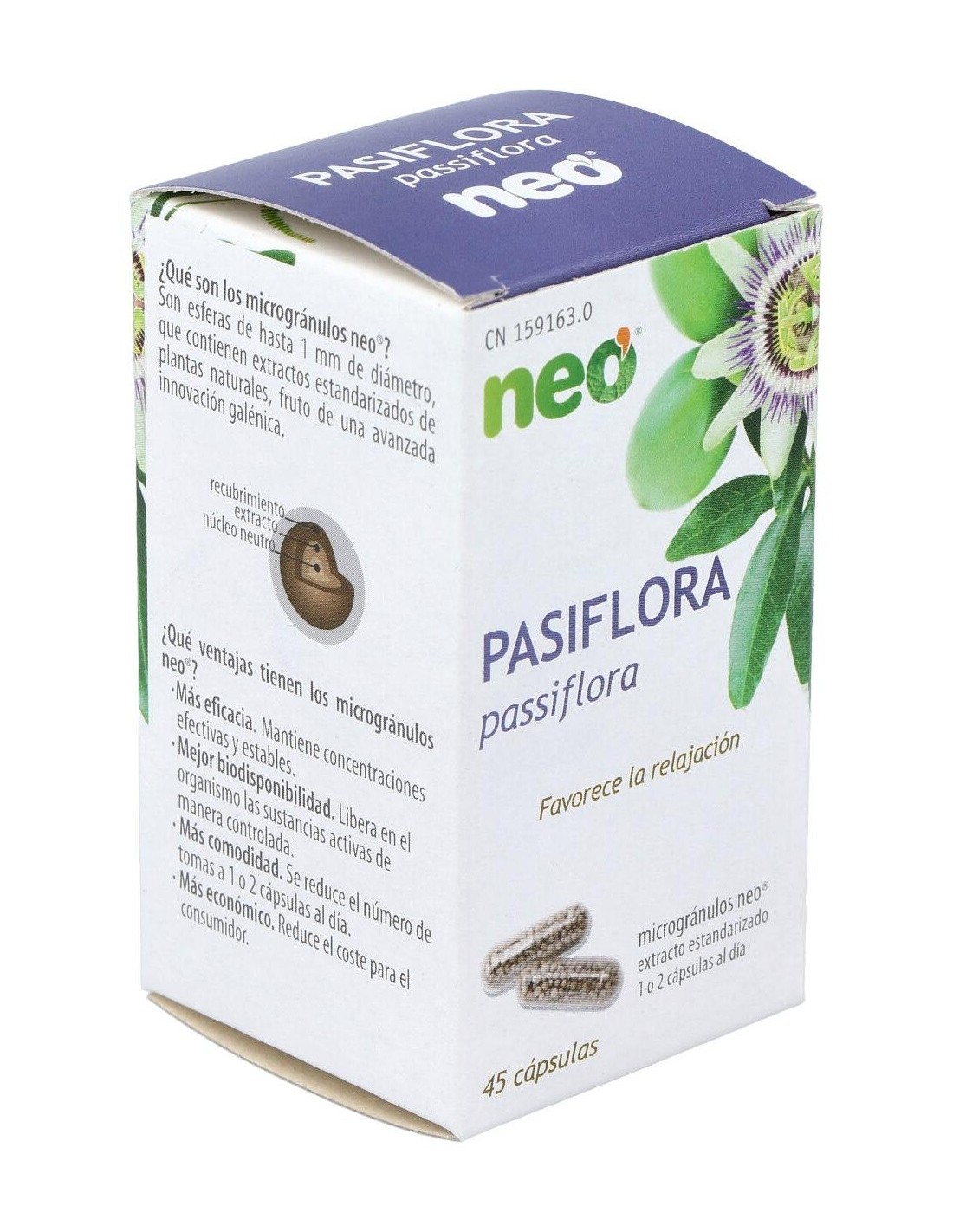 Pasiflora Microgranulos Neo 45Cap. de Neo es un suplemento natural para personas que buscan apoyo en la relajación. Facilita el bienestar gracias a su formulación en microgránulos de pasiflora para una absorción rápida.
