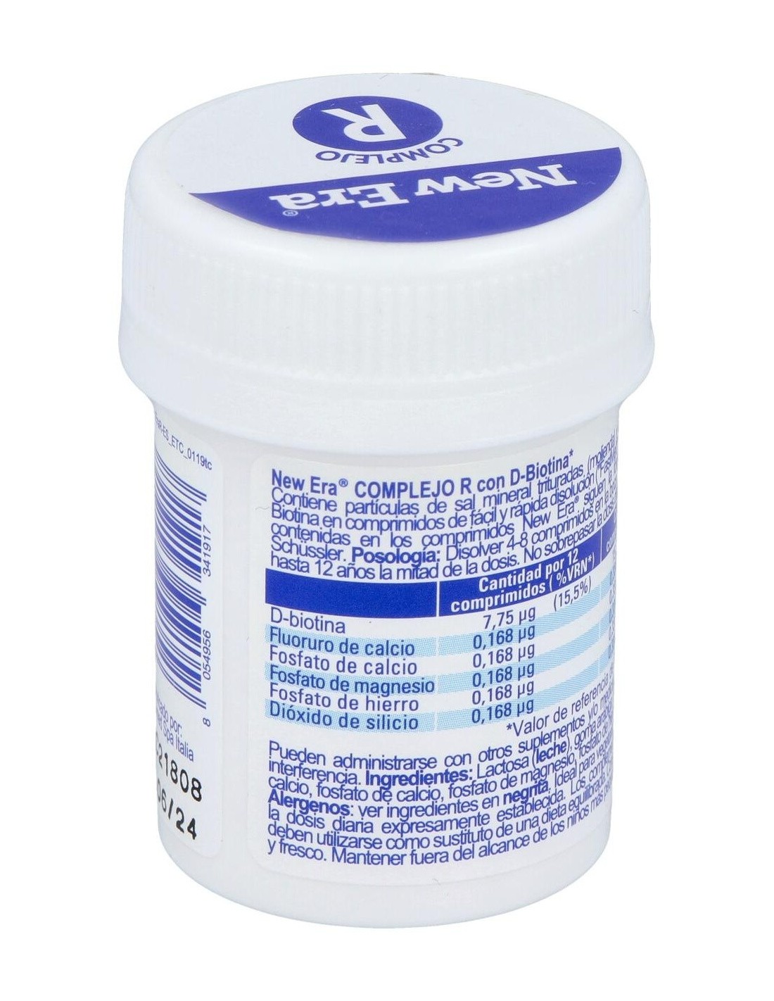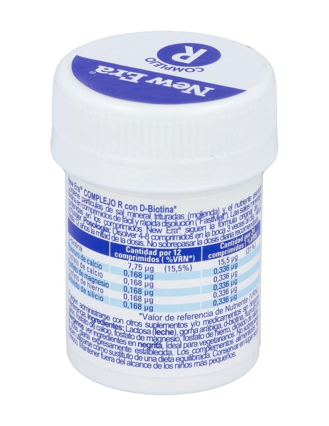 Lactosa (leche), goma arábiga, biotina,fluoruro de calcio, fosfato de calcio, fosfato de magnesio, fosfato de hierro, dióxido de silicio.