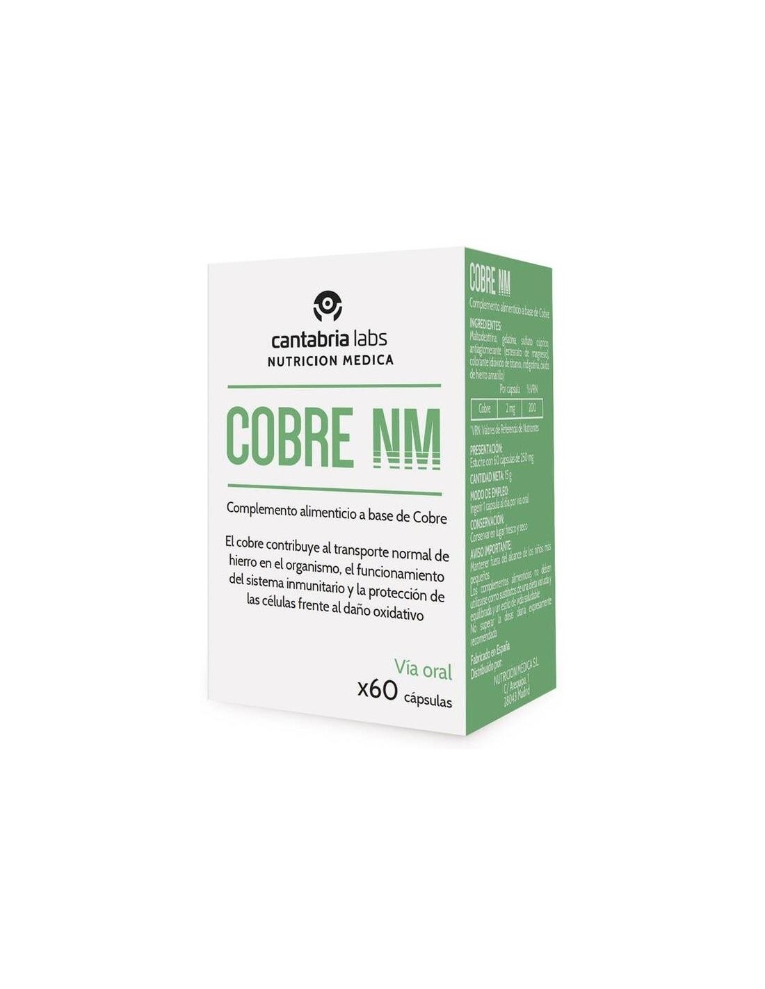 Complemento alimenticio a base de cobre, el cual contribuye al funcionamiento normal del sistema inmunitario, a la protección de las células frente al daño oxidativo y la pigmentación normal de la piel y el cabello, al funcionamiento normal del sistema nervioso, al transpote normal de hierro en el organismo y al metabolismo energético normal.