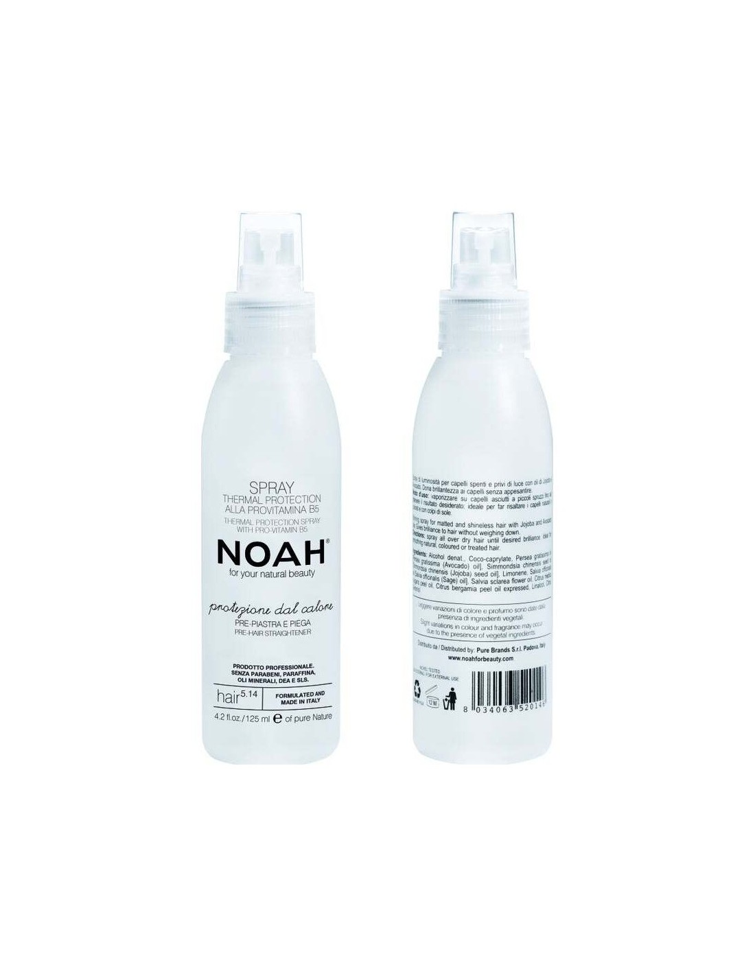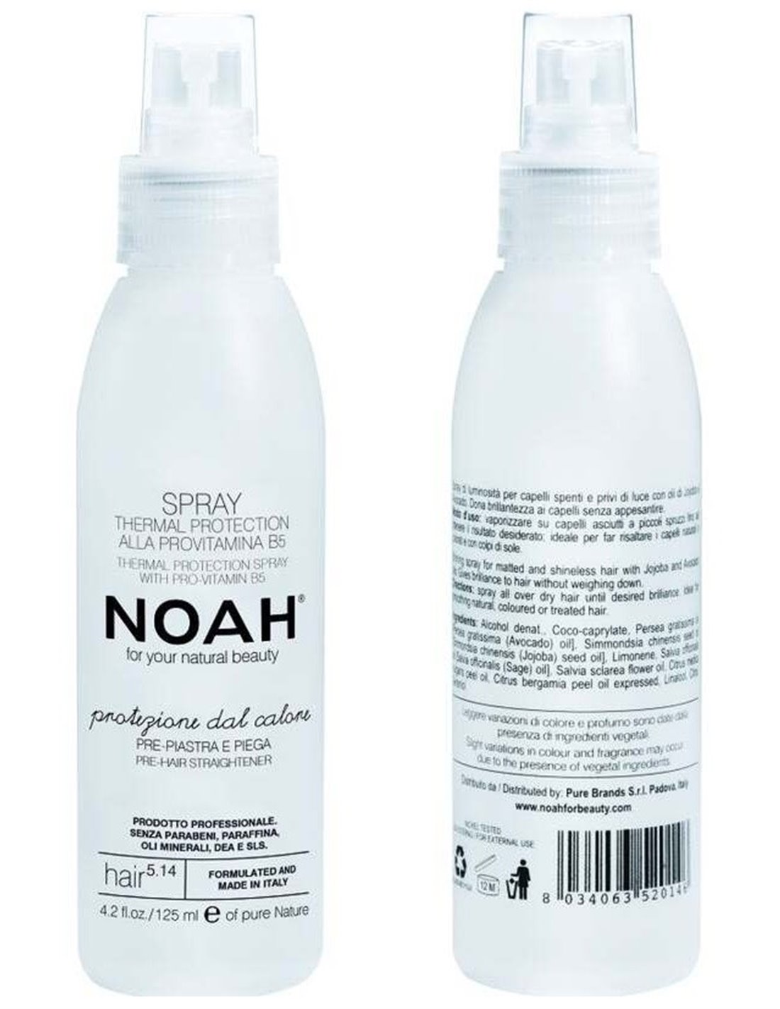 NOAHSpray con provitamina B5 y proteínas de arroz, usado antes de la plancha, secador o difusor protege el cabello del daño por calor. Con ingredientes derivados de plantas, hidrata y nutre el cabello. El producto NO contiene Parabenos, Parafina, Aceites Minerales, DEA y SLS.