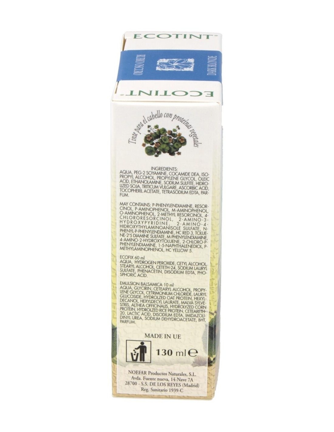 Ecofix 60 ml: Aqua, Hydrogen Peroxide, Cetyl Alcohol, Stearyl Alcohol, Ceteth-24, Sodium Lauryl Sulfate, Phenacetin, Disodium Edta, Phosphoric acid.