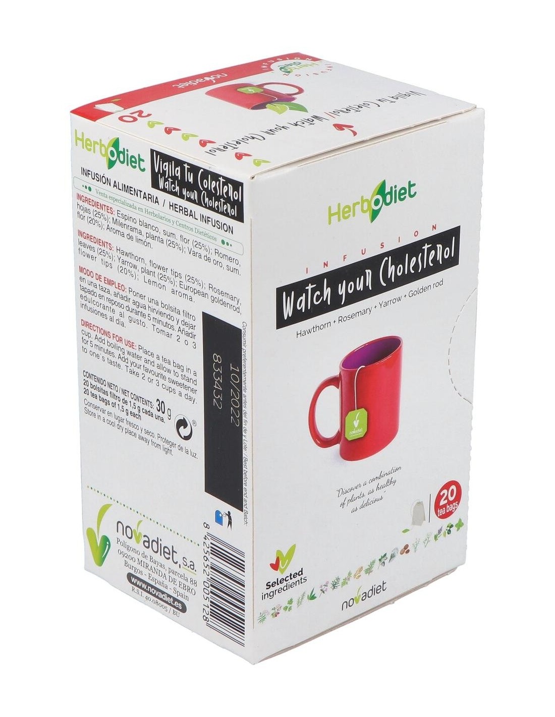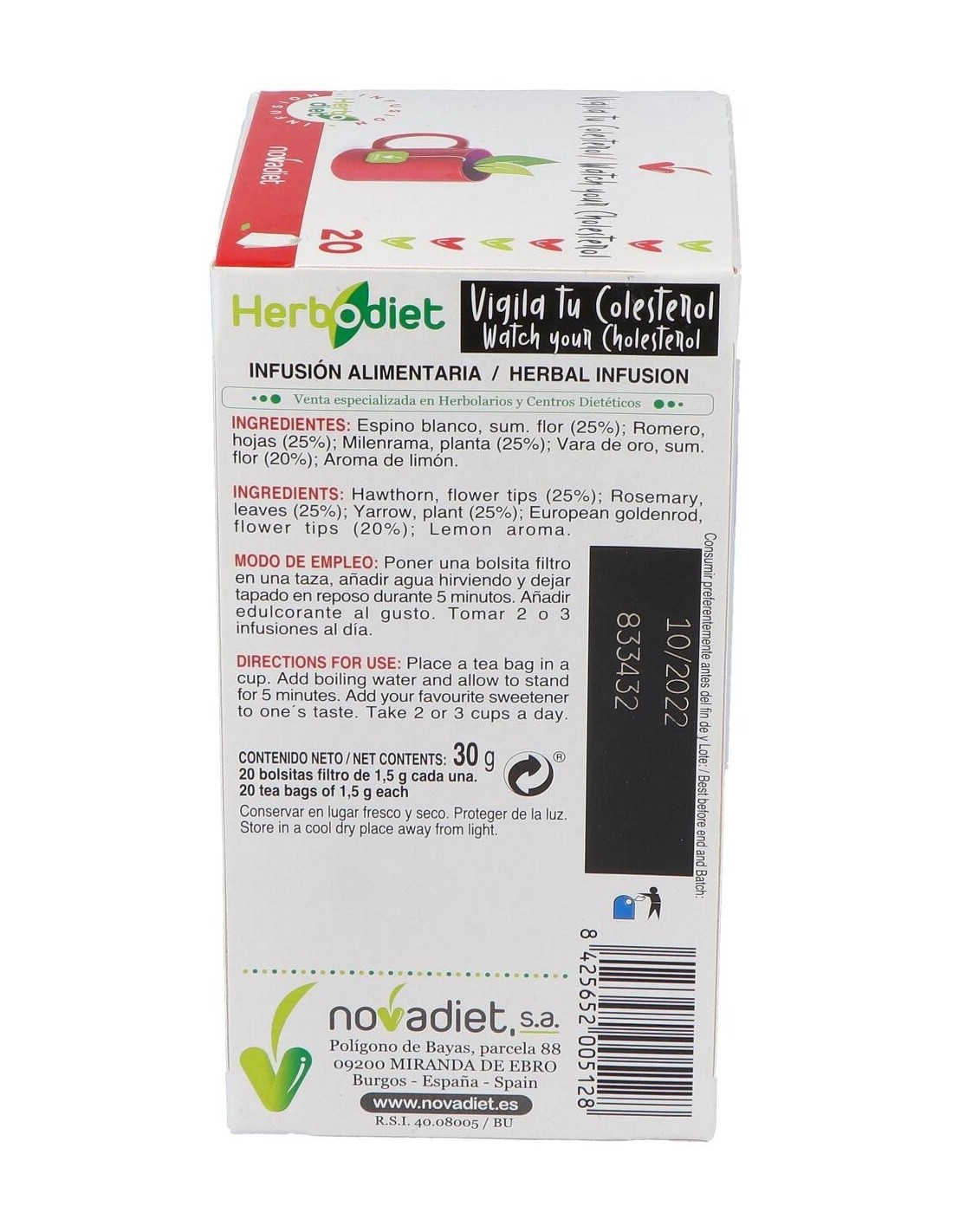 Herbodiet Vigila Tu Colesterol Envase de 20 bolsitas filtro de 1,5 g. de Novadiet