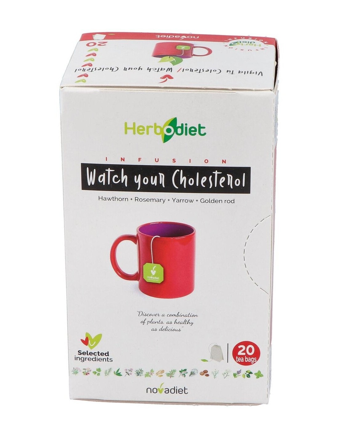 Herbodiet Vigila Tu Colesterol Envase de 20 bolsitas filtro de 1,5 g. de Novadiet es una infusión diseñada para personas que buscan complementar su dieta con ingredientes naturales que apoyan el mantenimiento de niveles saludables de colesterol. Este producto es adecuado para quienes prefieren una opción práctica y fácil de preparar en su rutina diaria.