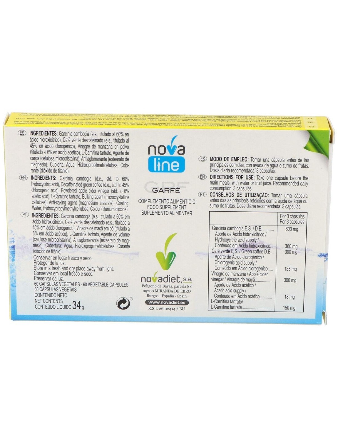 Garfe Envase de 60 cápsulas vegetales. de Novadiet